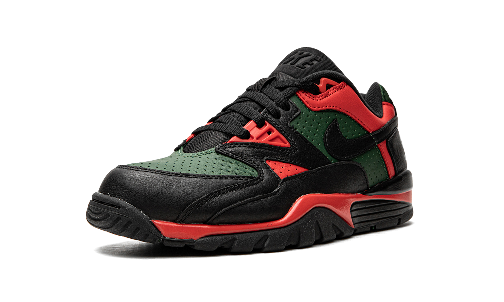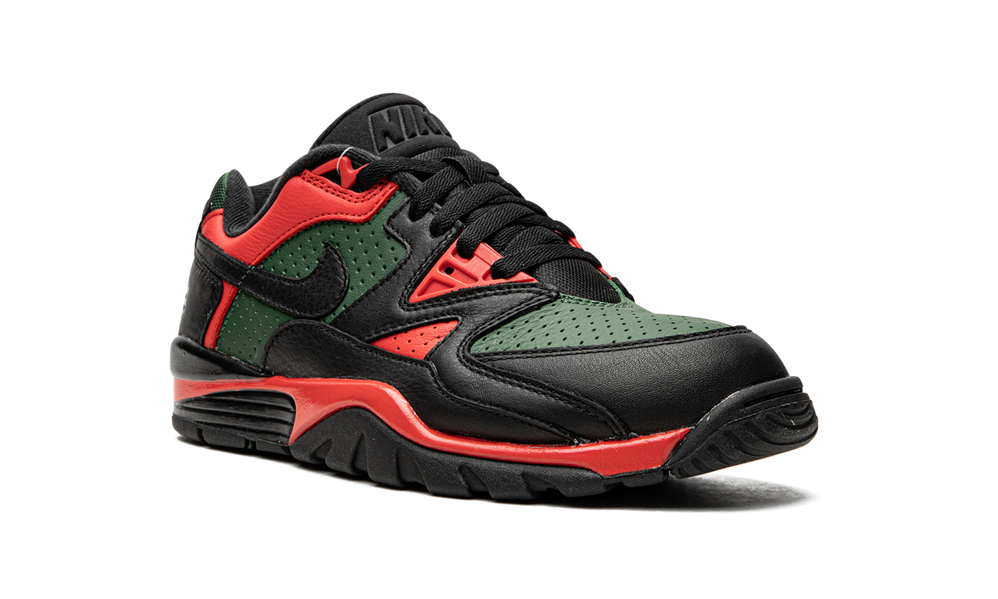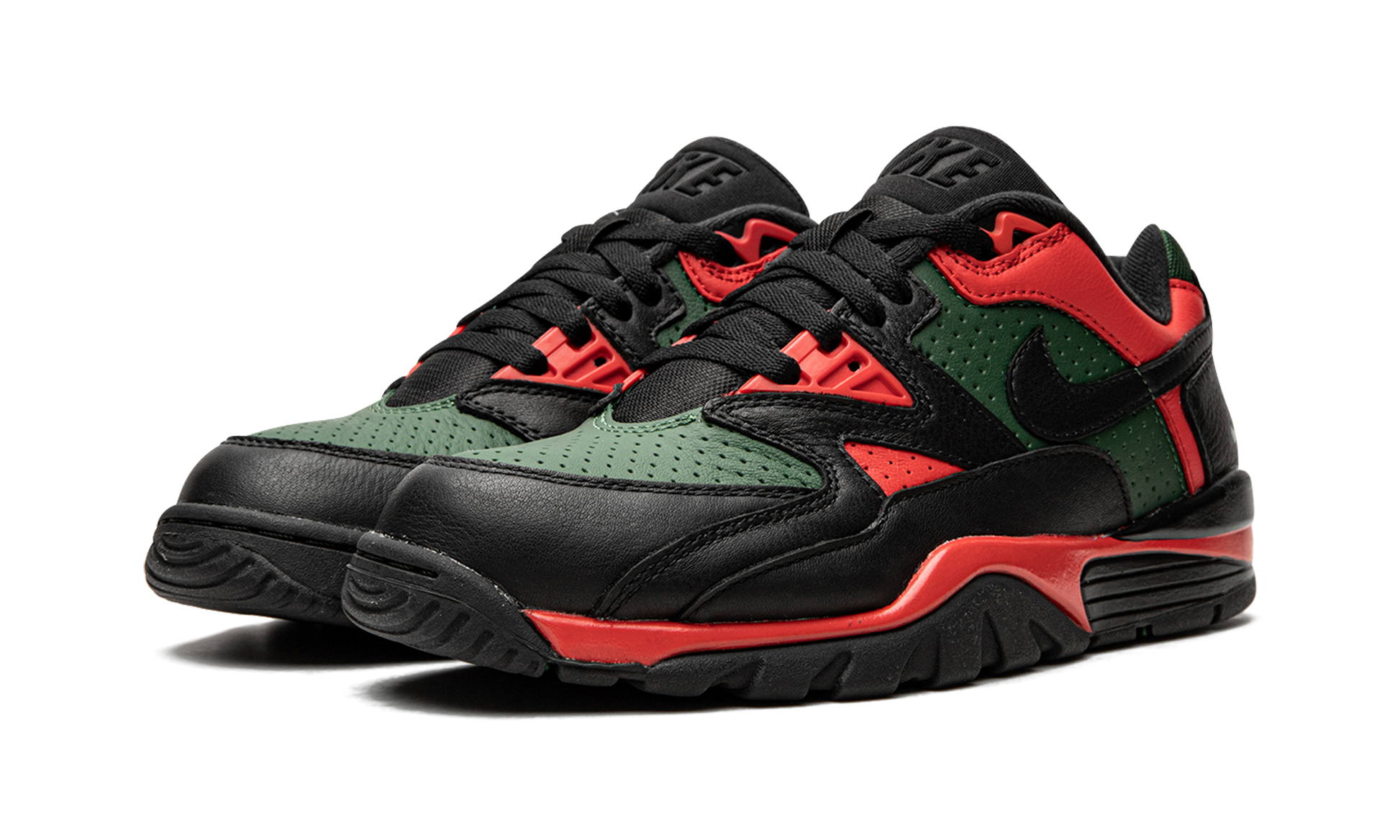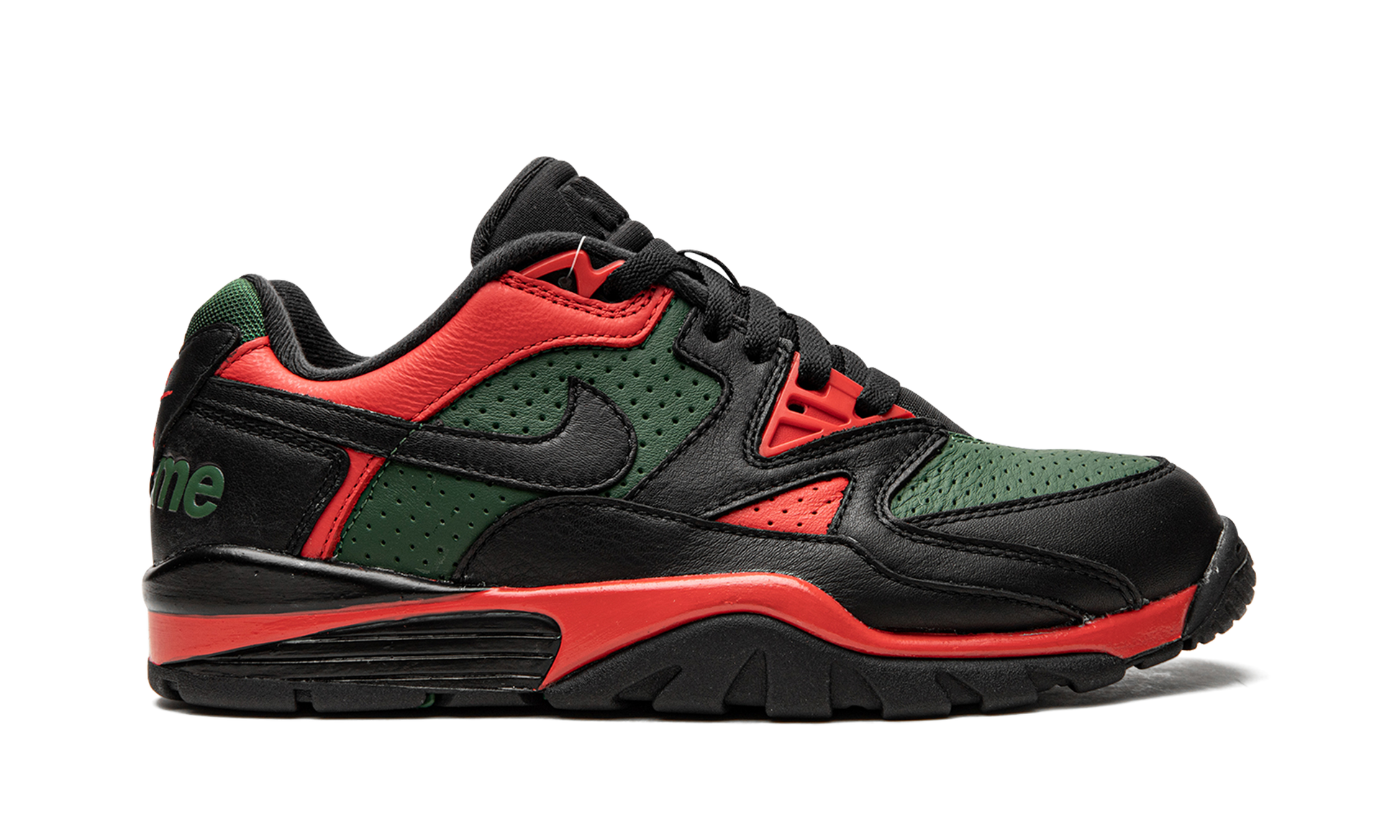 The Supreme x Nike Air Cross Trainer 3 Low “Black” is one of two colorways of the vintage performance shoe designed by Supreme in October 2021. Supreme's reverence for slept-on, archival Nike silhouettes, particularly those from the brand's early '90s run, continues with this interesting take on the underrated Air Cross Trainer 3 Low from 1990. The perforated green leather base is contrasted by black and crimson leather overlays. A black leather Swoosh is found on either side. Dual “Nike Air” and “Supreme” branding appears on the back of the shoe. A chunky foam midsole ensures a comfortable ride. The colorway is loosely inspired by high fashion brand Gucci's black, red, and green motif. Release date: October 14, 2021