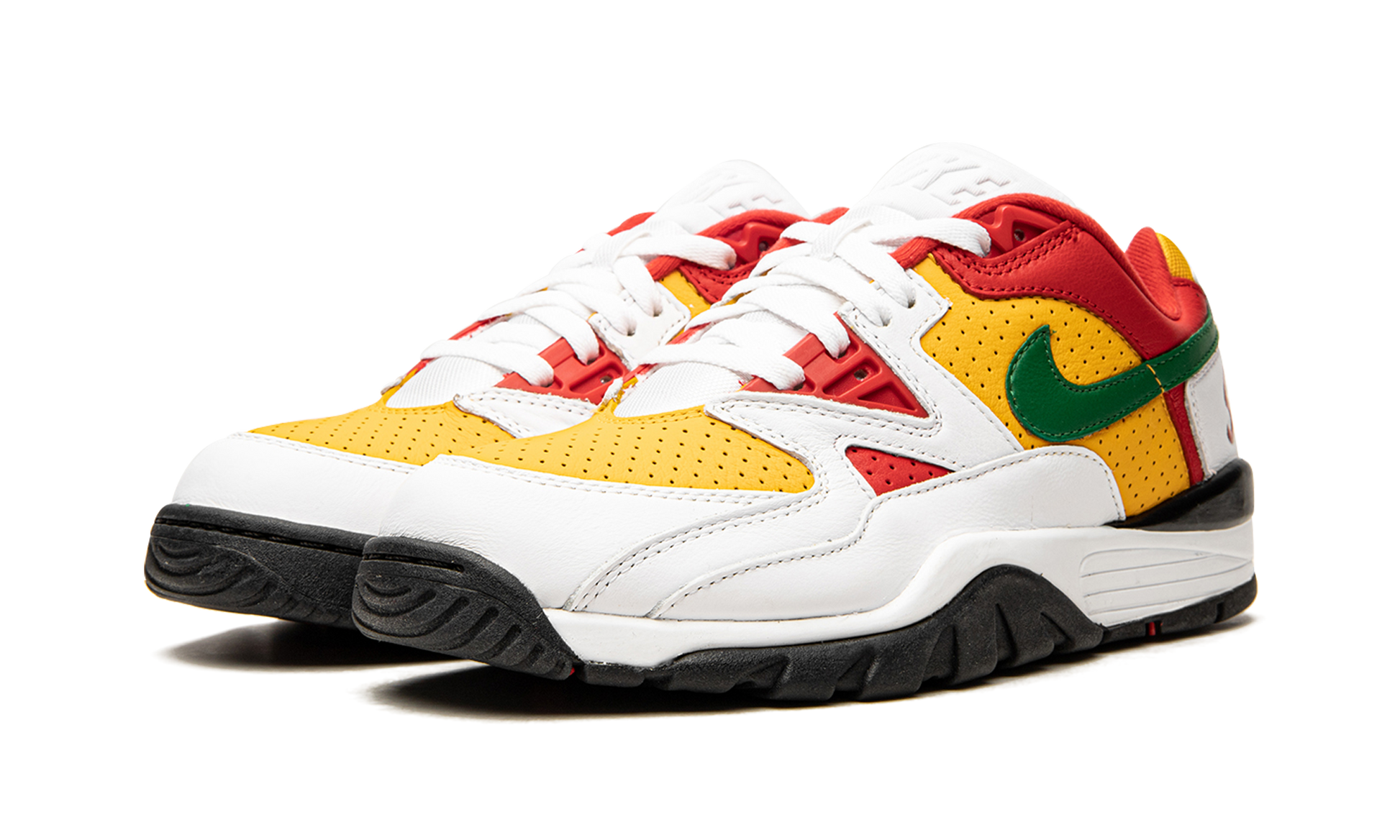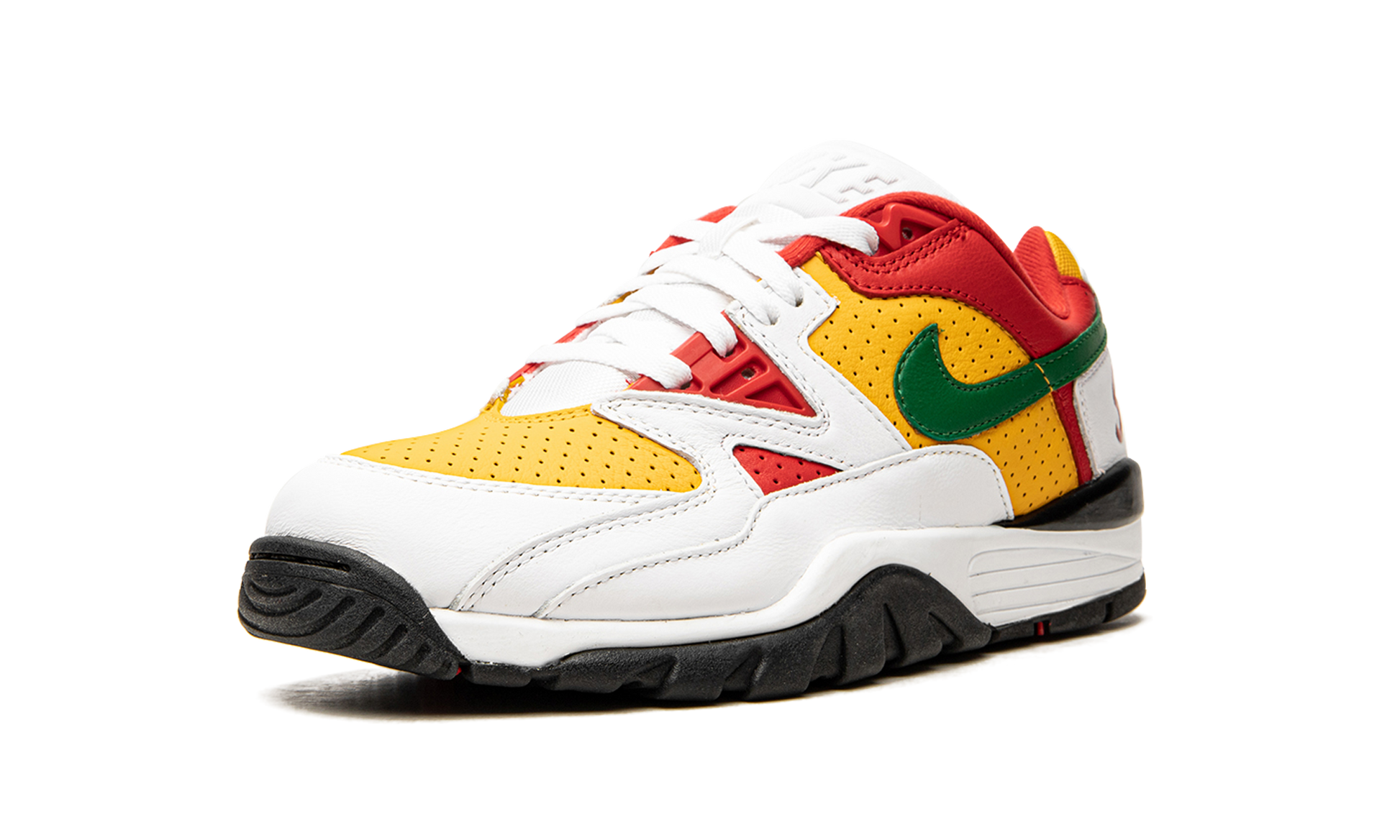 The Supreme x Nike Air Cross Trainer 3 Low “White” is an October 2021 collaboration between the New York streetwear brand and Nike that updates the retro training shoe with the former’s unique branding. In true Supreme fashion, the “World Famous” skate brand looked deep within Nike’s archives to unearth the Air Cross Trainer 3 Low, a shoe that debuted back in 1990. Supreme has reworked similar styles like the Nike Zoom Streak Spectrum Plus and Air Trainer 2 in the past. On this shoe, the base of the upper is constructed in an all-yellow, perforated leather design. Contrasting white leather overlays and a green leather Swoosh add to the look. Dual “Nike Air” and “Supreme” branding is found on the heel. A chunky foam midsole ensures a comfortable ride. Release date: October 14, 2021