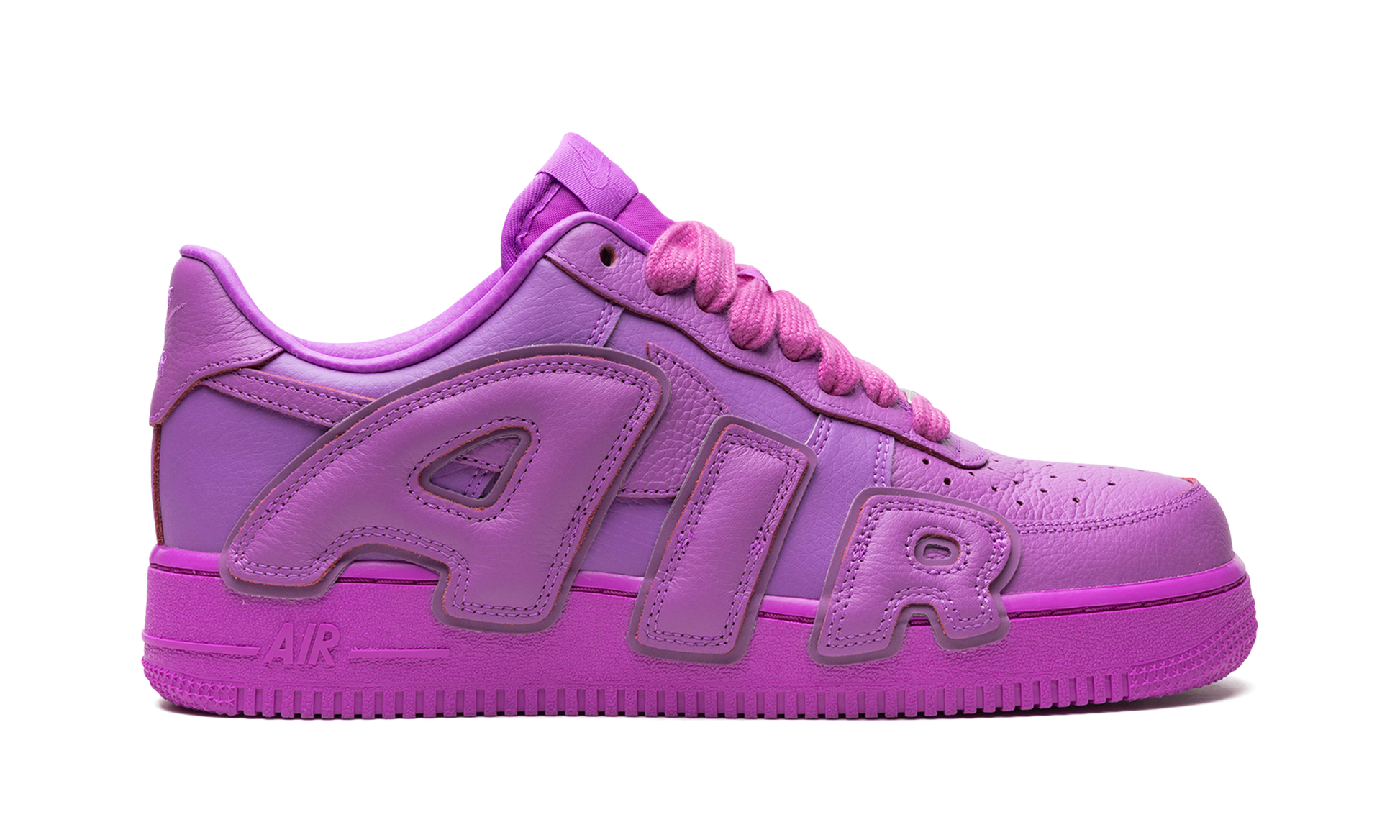The Cactus Plant Flea Market x Nike Air Force 1 “Fuschia” is a collaboration by the streetwear brand on the iconic sneaker with a monochromatic look. Cactus Plant Flea Market’s Air Force 1 nods to the look of the big “Air” branding popularized by Scottie Pippen’s old signature shoe, the Air More Uptempo. The shoe has an all-Fuschia leather construction. The model’s iconic Swoosh detailing is finished off in Fuschia, as well. Large “SUNSHINE” leather detailing is overlaid across the left shoe. The word “AIR” can be found on the outward facing side of the right shoe. Release date: May 1, 2024