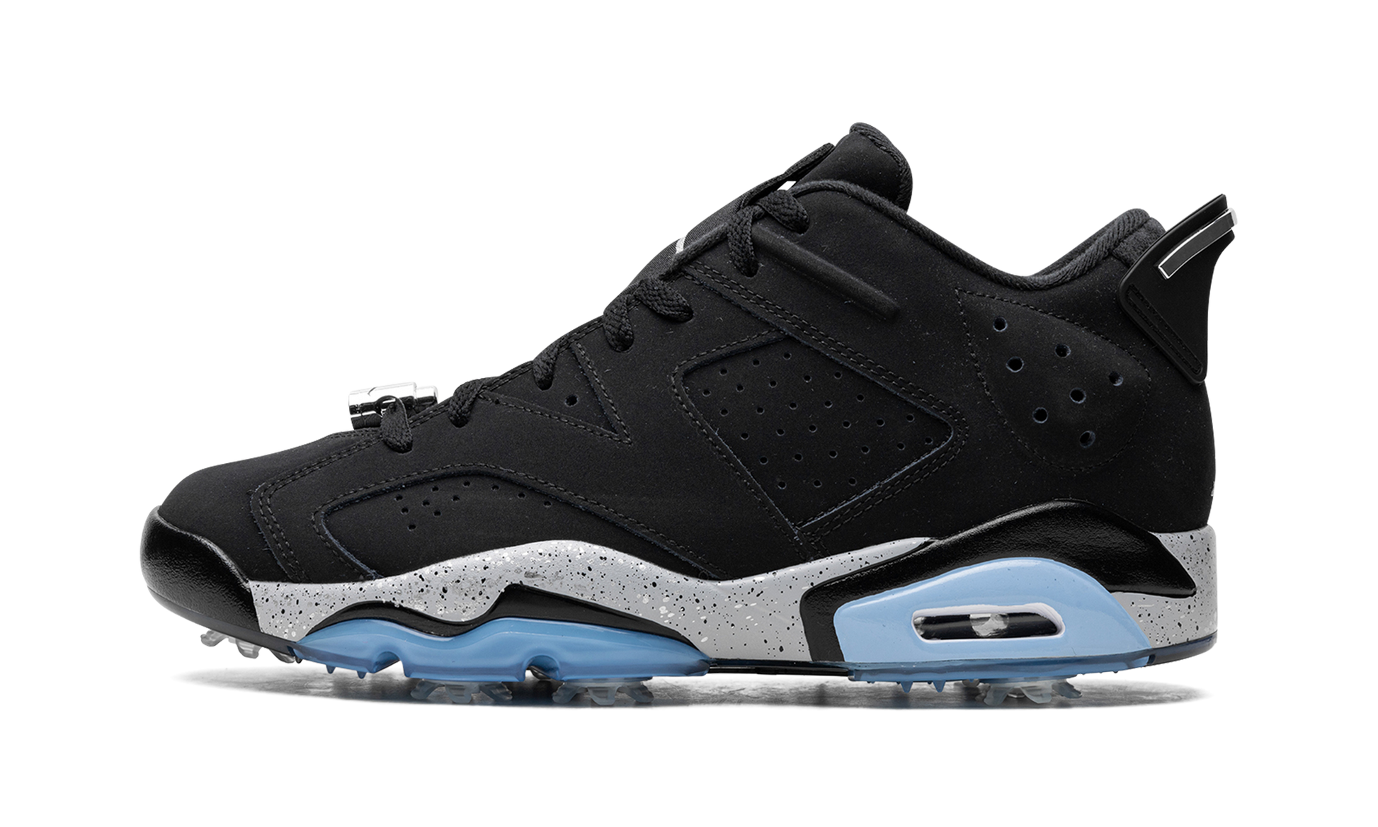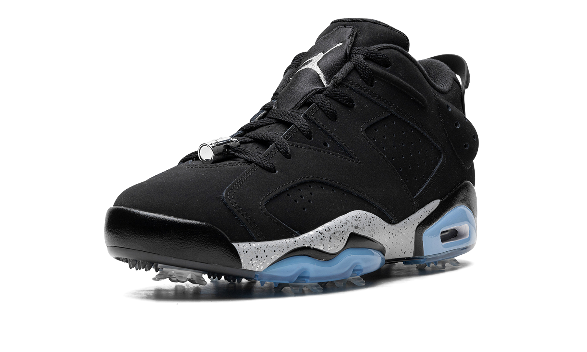 The Air Jordan 6 Low Golf “Metallic Silver” is an alternate version of the retro basketball shoe made for the golf course. The “Metallic Silver” Jordan 6 Low Golf is designed similarly to the Jordan 6 Low “Metallic Silver” from 2015, except for a few differences in the design of the midsole. The shoe features a black synthetic nubuck construction with tonal overlays. A Metallic Silver Jumpman is embroidered on the tongue and on the heel. Additional Metallic Silver or chrome detailing is found on the spoiler on the heel. The midsole is painted grey with black speckling. An icy translucent blue rubber outsole with nubs help provide traction on the golf course. Release date: May 17, 2023