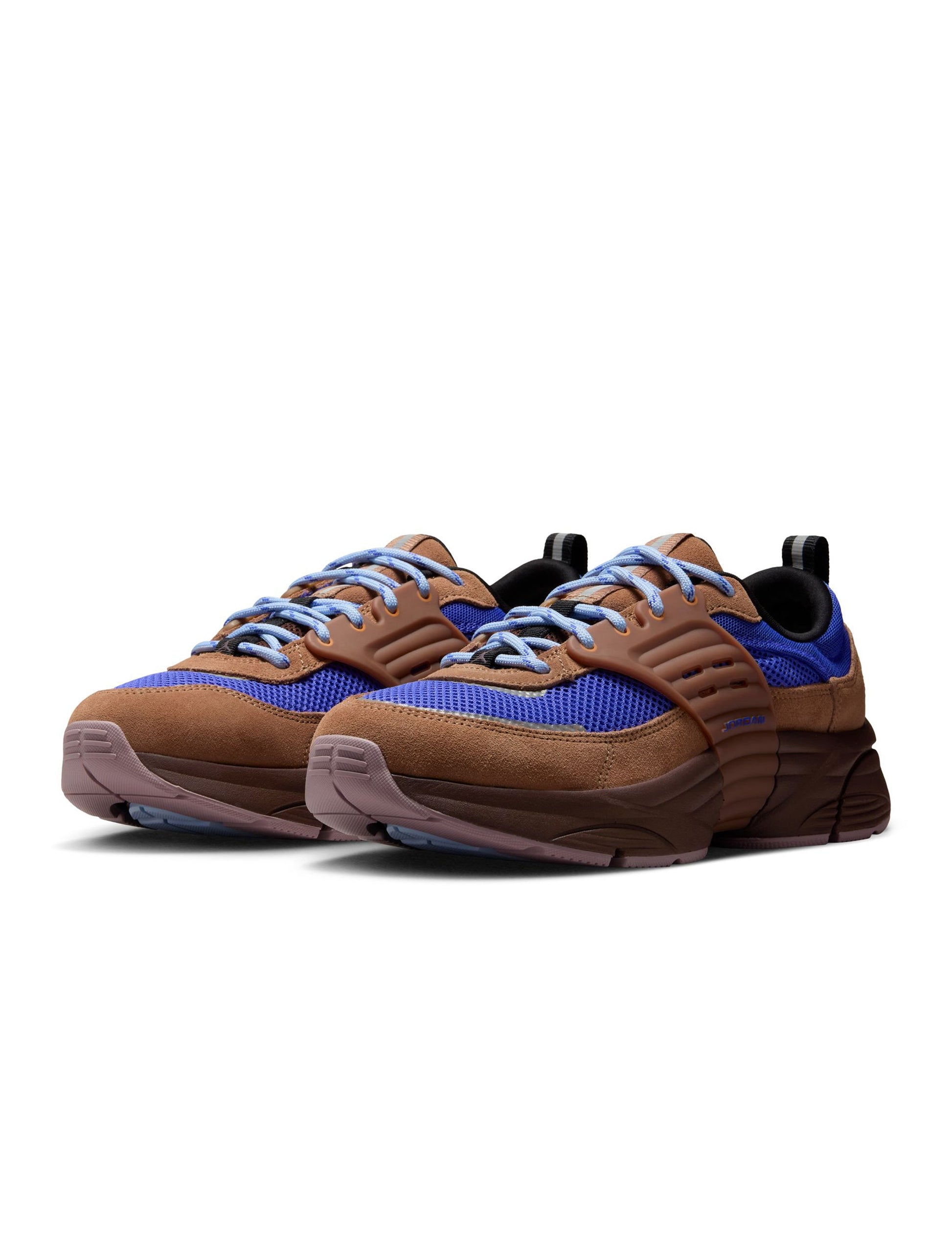 The Jordan Trunner blends durability and style with a mix of suede and mesh across the upper, balancing structure with breathability. Dressed in an “Archaeo Brown” and “Persian Violet” colorway, it channels a vintage trail-runner aesthetic. Pull tabs at the tongue and heel allow easy on-and-off wear, while the ribbed midsole and perforated side cage add bold style and stability. Finished with Jumpman branding on the heel and outsole, this sneaker delivers everyday comfort with EVA foam cushioning.