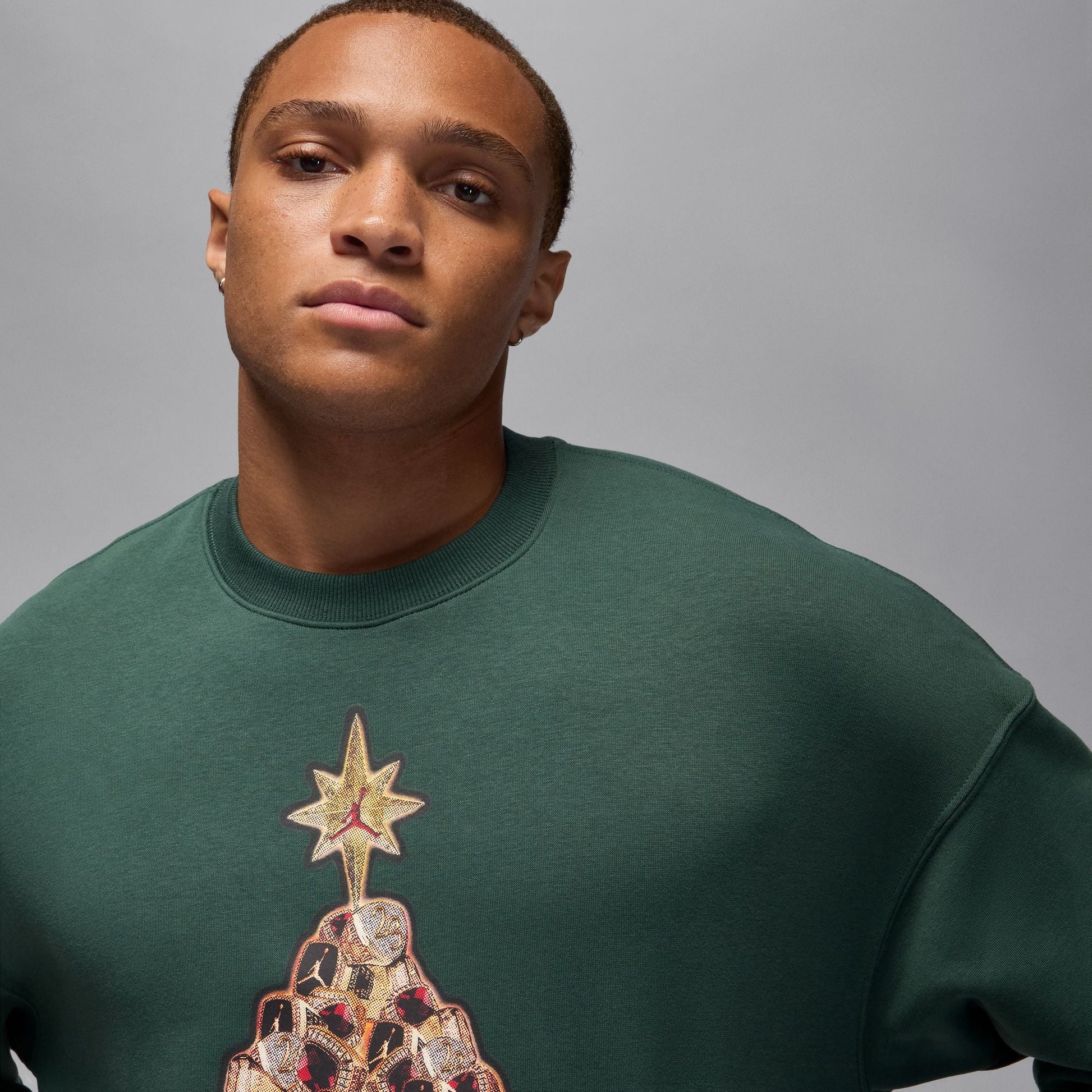 Celebrate the season Jordan-style with the Air Jordan Men's Holiday Fleece Crewneck. Crafted from soft brushed fleece, this cozy sweatshirt brings warmth and iconic energy to your winter rotation. The standout holiday tree graphic is made up of stacked Jordan sneakers topped with a shining star — a nod to MJ’s legacy and the spirit of the season. Ribbed cuffs and hem deliver a secure fit, while subtle Jumpman embroidery on the sleeve completes the festive design.
