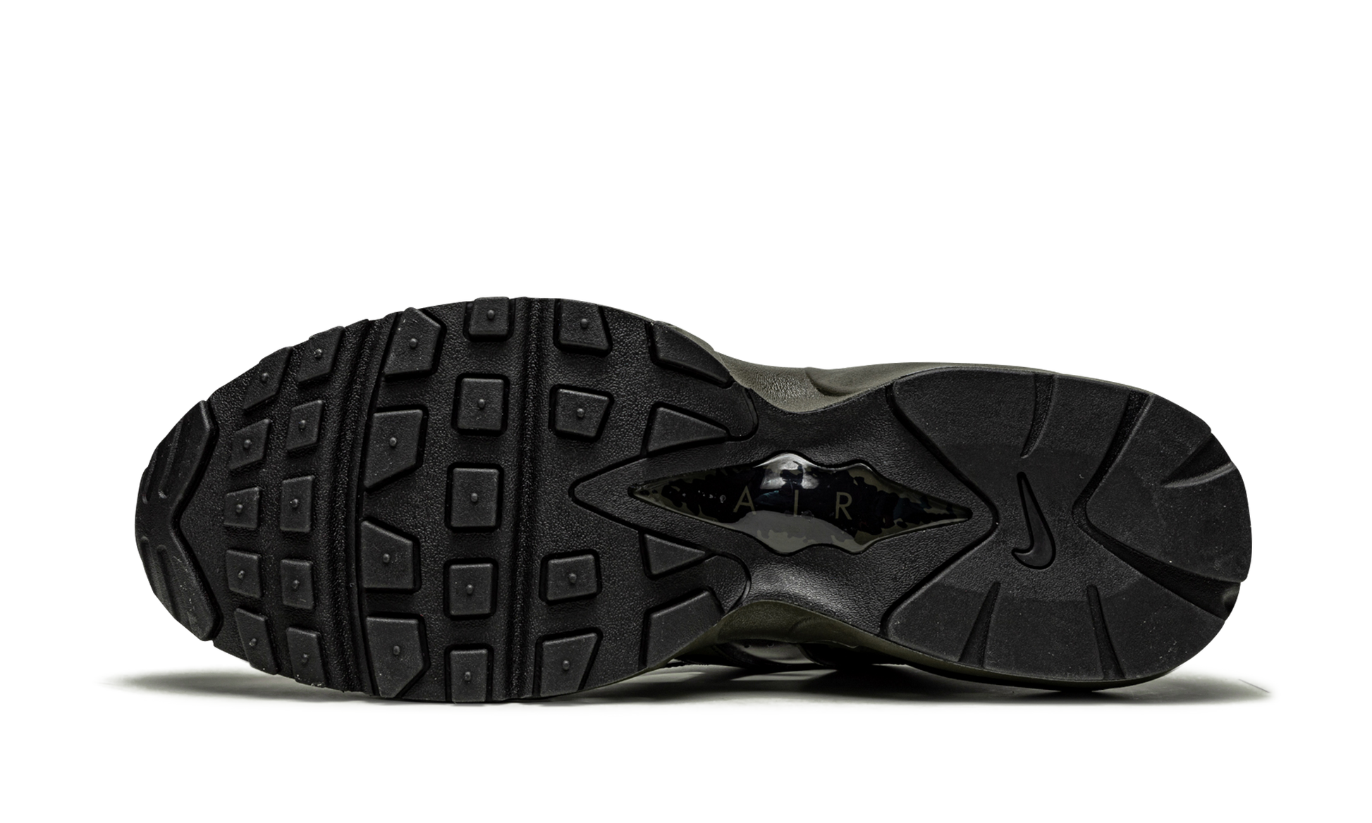 The Supreme x Nike Air Max 96 “Camo” is one of the colorways of the retro running shoe designed by the New York based streetwear brand in 2021. While contemporaries like the Nike Air Max 1 and Air Max 90 are among the most readily available models offered by Nike, the Air Max 96 is obscure. Some would argue that’s the very reason why Supreme chose the model for its Spring/Summer 2021 collection. The streetwear brand modifies the design with translucent panels to its side profile. The new look replaces the "tooth"-like mesh panels that were on the original Air Max 96. The upper is constructed in leather with mesh detailing around the collar and eyelets, all with a green camo print. An embroidered Swoosh appears on the lateral heel. Supreme branding can be found beneath the embroidered Swoosh on the top of the tongue and around the edges of the tongue. A reflective silver Supreme box logo is located on the back of the shoe. The Air Max 96’s visible Air units in the midsole are reminiscent of the design of the Air Max 95 with visible Air in the heel and forefoot.