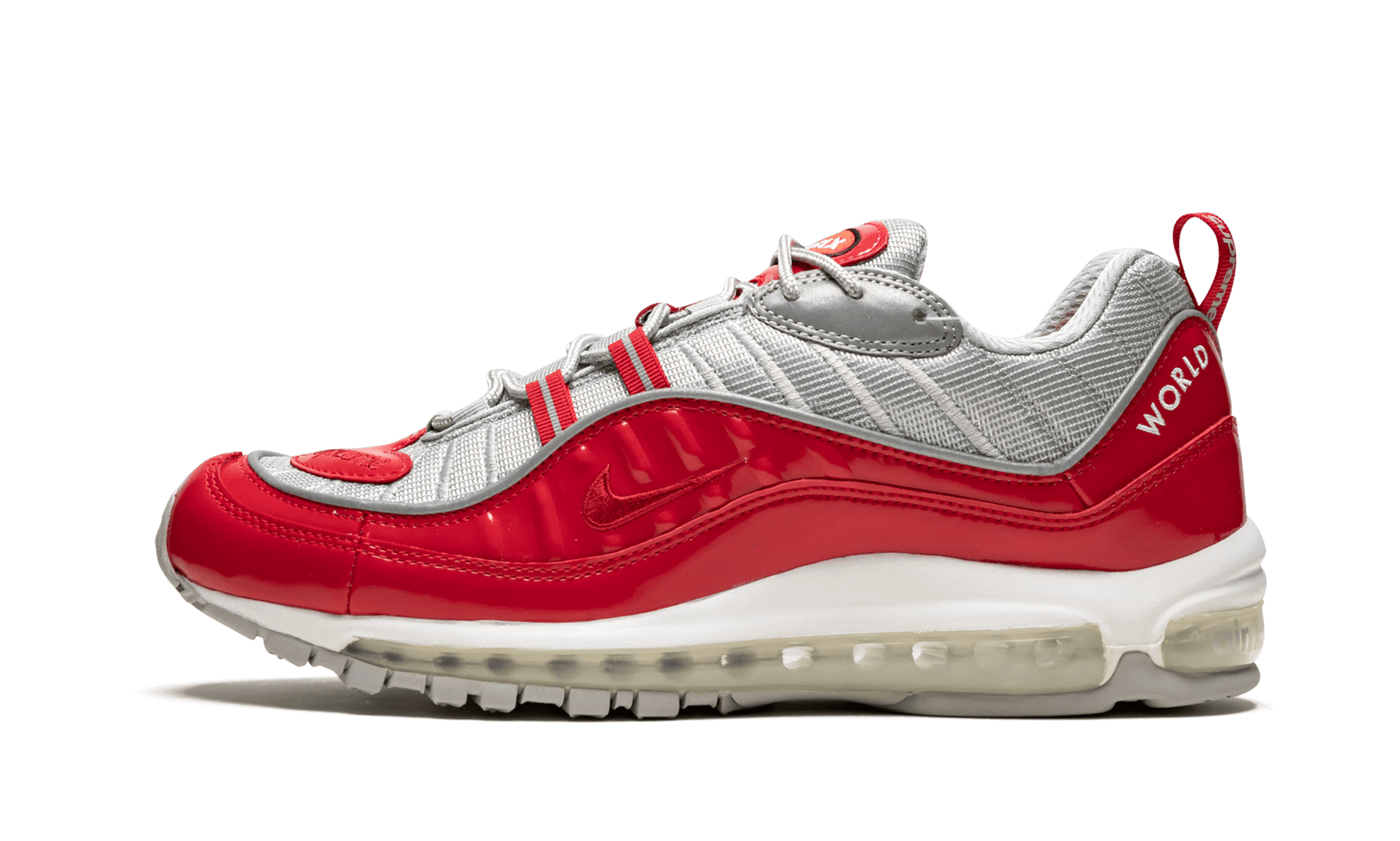 In 2016 Supreme teamed up with Nike for a collaboration on an unexpected model, the Air Max 98. With a total of four colorways, this version in grey mesh and bright red patent leather is a favorite of many.