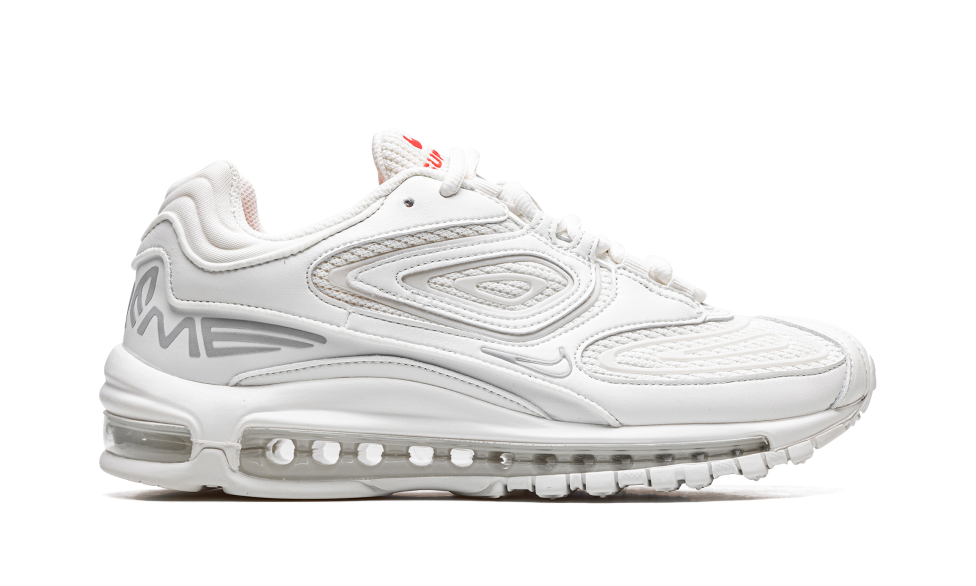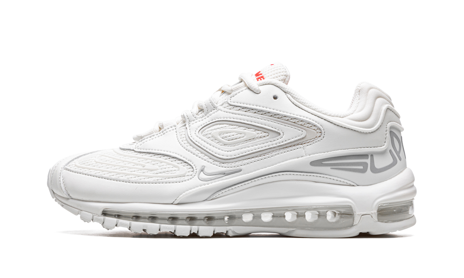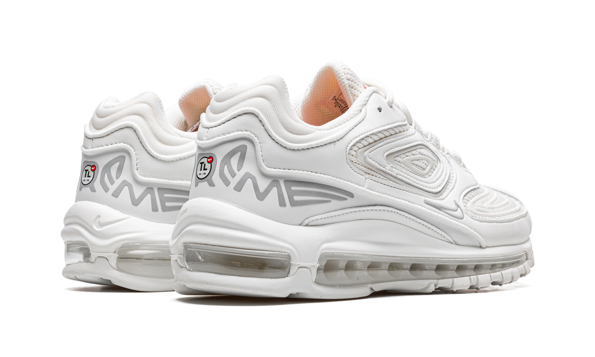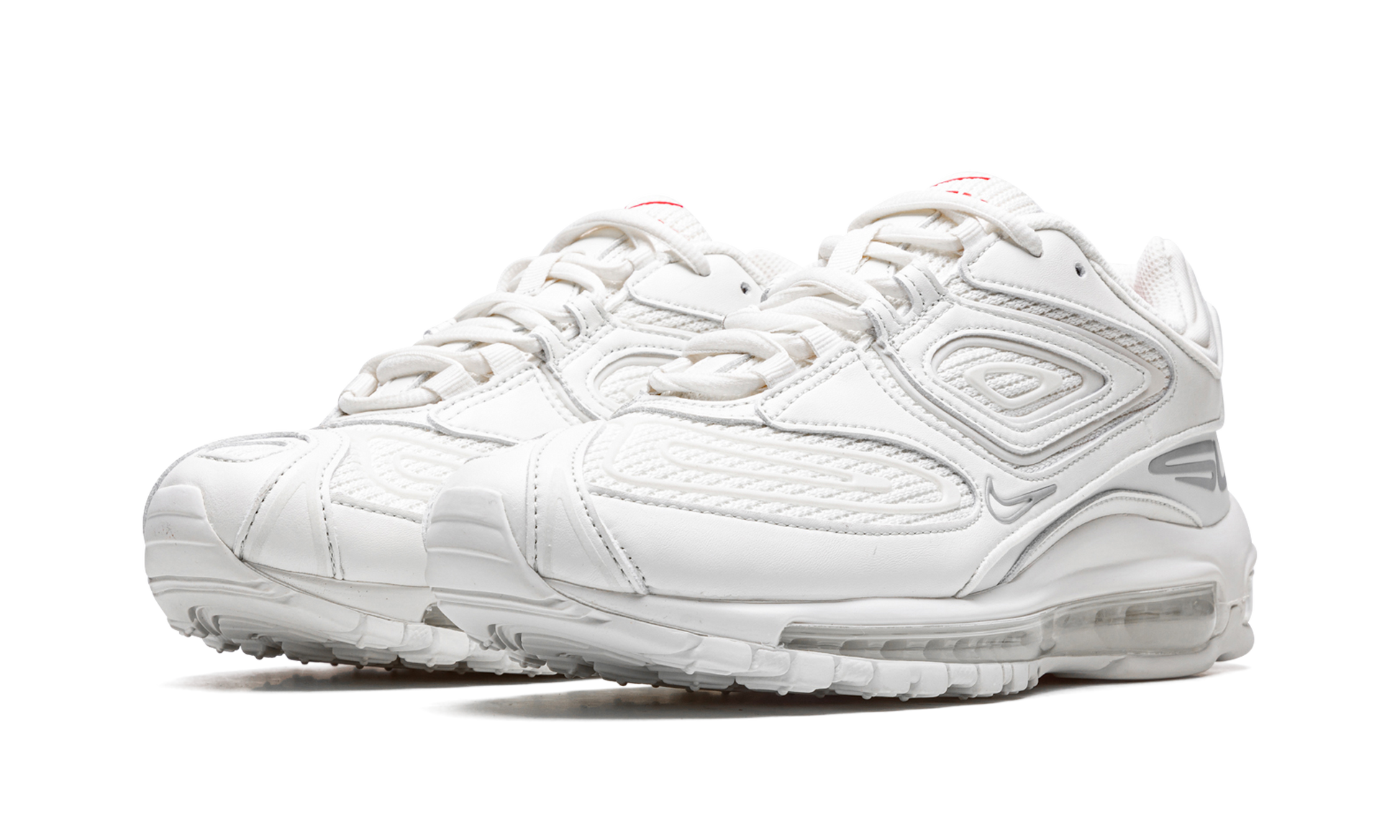 The Supreme x Nike Air Max 98 TL “White” is one of four colorways of the retro performance running shoe co-designed by the New York based clothing brand and Nike in November 2022. Supreme’s seasonal collaboration with Nike continued in 2022 with the “World Famous” streetwear brand tapping the somewhat obscure Air Max 98 TL for a special collection of colorways. The “White” treats the silhouette to a monochromatic white makeover that excels in versatility. The sneaker features a white mesh base with tonal leather and TPU overlays. The Swoosh logo found on the lateral side is treated with a reflective finish that shines when exposed to light in the dark. Additional reflective detailing can be found on the “Supreme” branding on the heel and on the laces. A full-length visible Air cushioning unit appears in the midsole and completes the look. Release date: November 3, 2022
