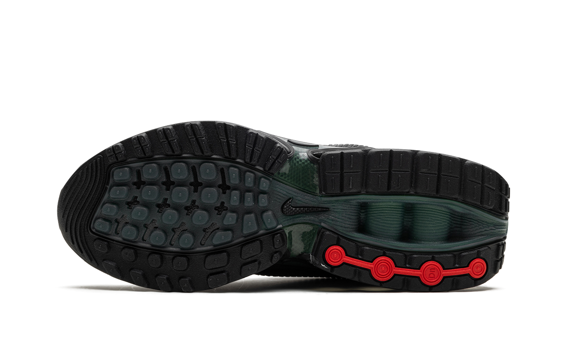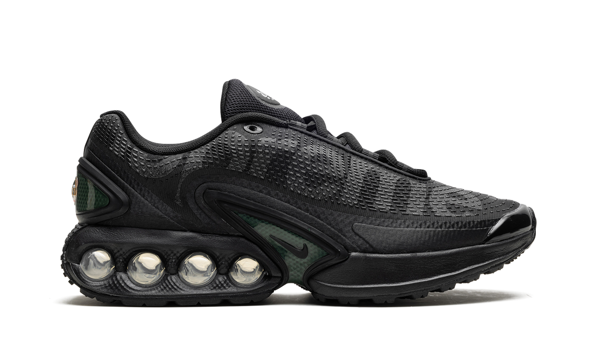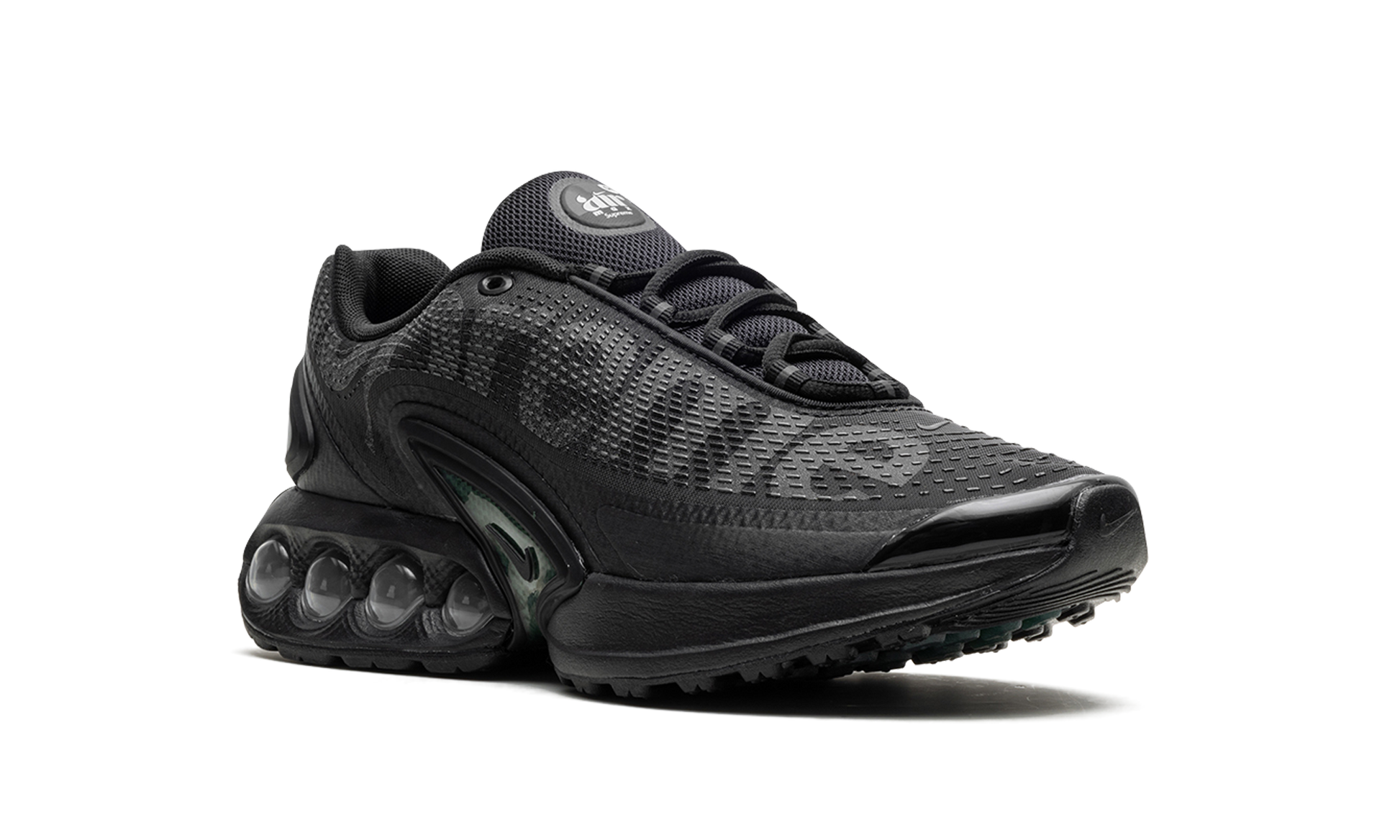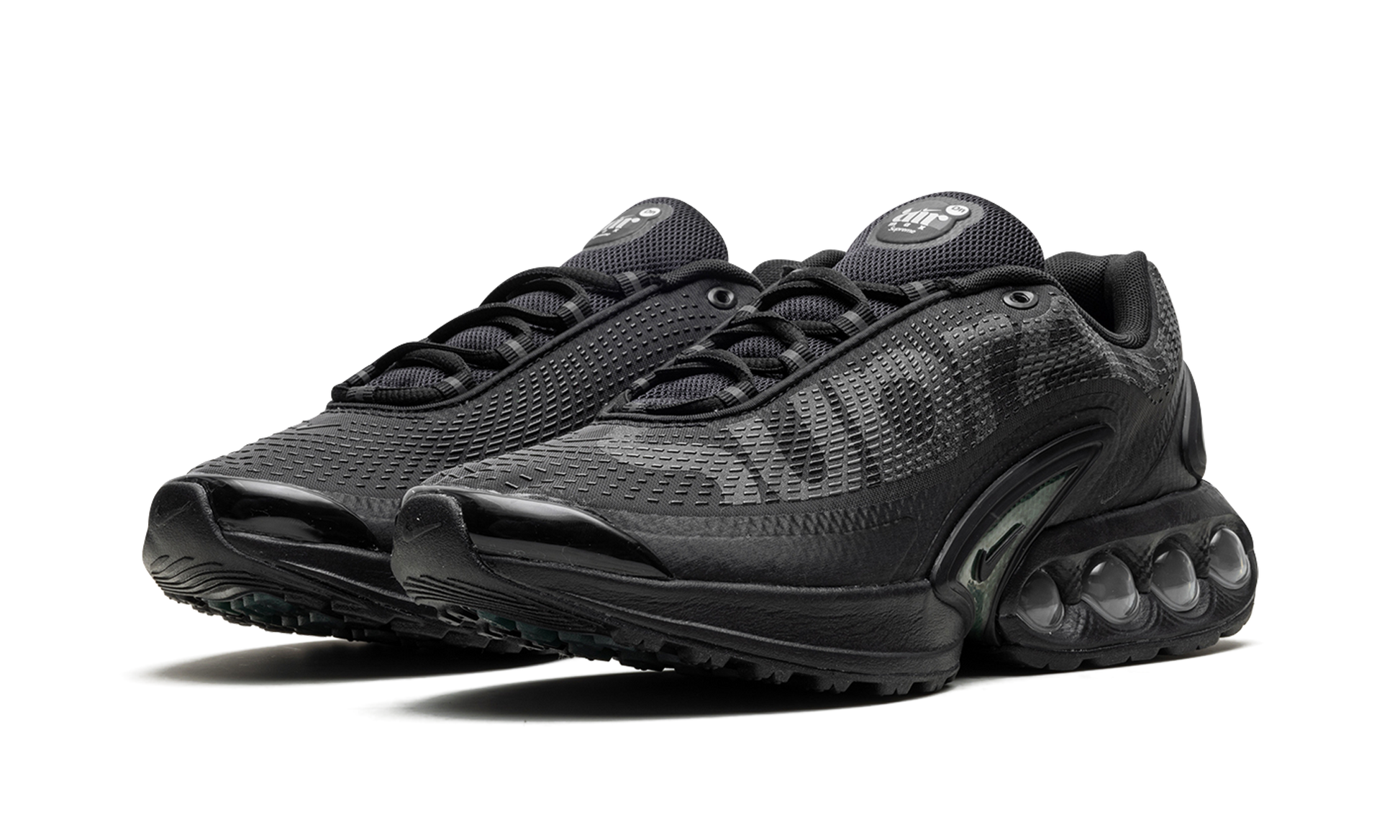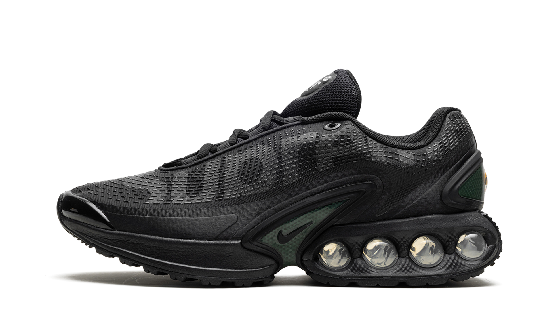 The Supreme x Nike Air Max Dn "Black" is a collaboration between Supreme and Nike on the lifestyle shoe that debuted in 2024. The Air Max Dn was introduced by Nike as part of its celebration for its annual Air Max Day in March 2024. It was also included in the high-profile collaboration with Supreme for the brand’s Spring/Summer 2024 collection. As far as the design of the shoe at hand, it features a seamless black mesh construction with tonal no-sew overlays. “Supreme” branding is printed on the lateral side in reflective lettering, while a co-branded logo can be found on the tongue and heel. Underfoot, a green-tinted TPU shank plate can be seen in the midsole, while exposed dual-pressure “tubes” filled with Nike’s Dynamic Air cushioning technology appear in the heel with “Supreme” branding printed on the lateral side. Release date: February 22, 2024
