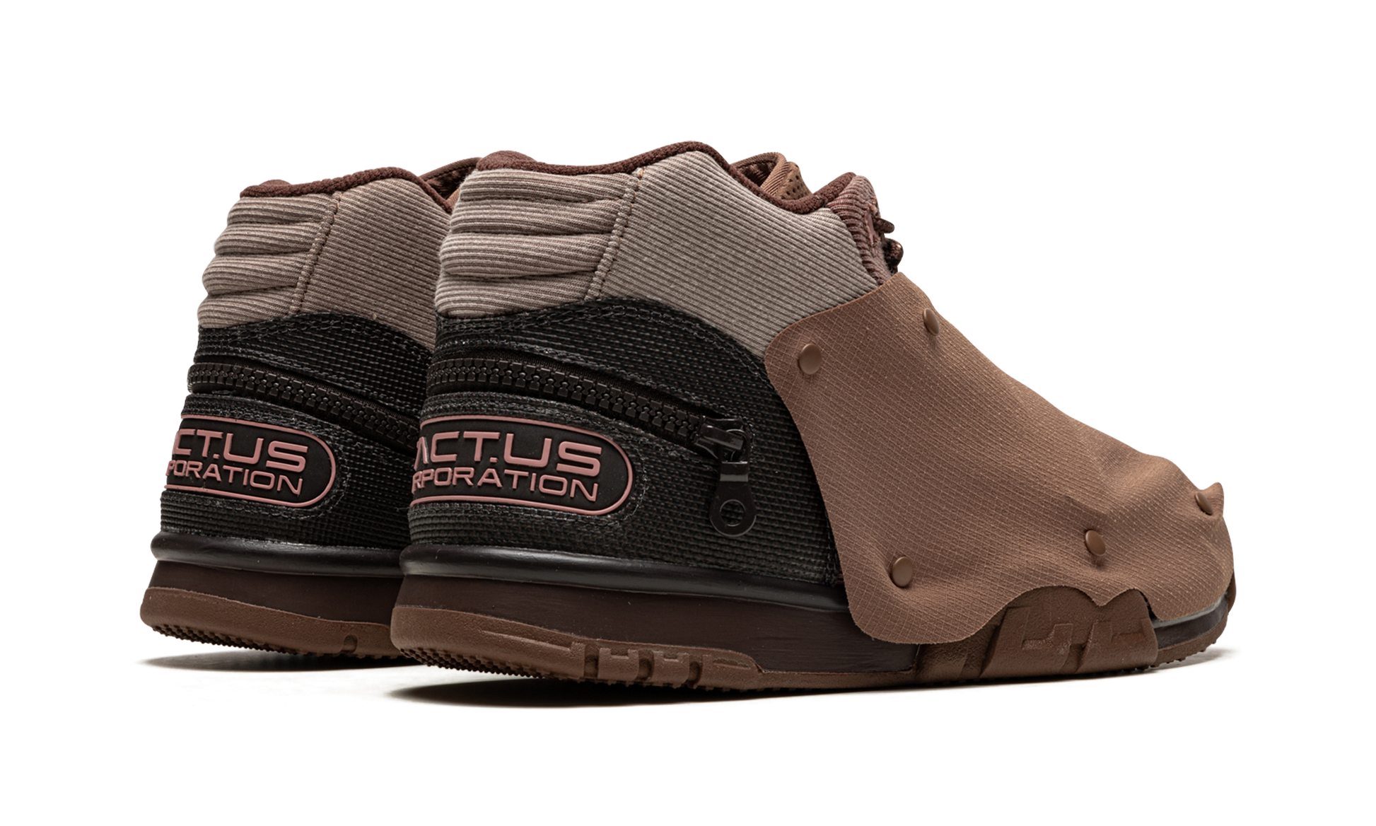 The Travis Scott x Nike Air Trainer 1 SP “Coriander” is a collaboration between the hip-hop star and Nike on the retro training shoe. Travis Scott completely overhauls the design of the Air Trainer 1, the popular cross-training performance shoe by Nike, with his signature “do-it-yourself” aesthetic. The “Coriander” features a corduroy upper designed in shades of brown, light burgundy, and tan. The brown carbon fiber-like overlays on the toe and on the heel contrast the look. The Air Trainer 1’s signature midfoot strap features “CA.CTUS CORPORATION” branding. Scott’s signature backwards Swoosh branding is found on the medial side of the shoe. Both a stash pocket and “CA.CTUS CORPORATION” detailing can be found on the heel. Snap buttons appear throughout the shoe’s upper. Release date: May 27, 2022