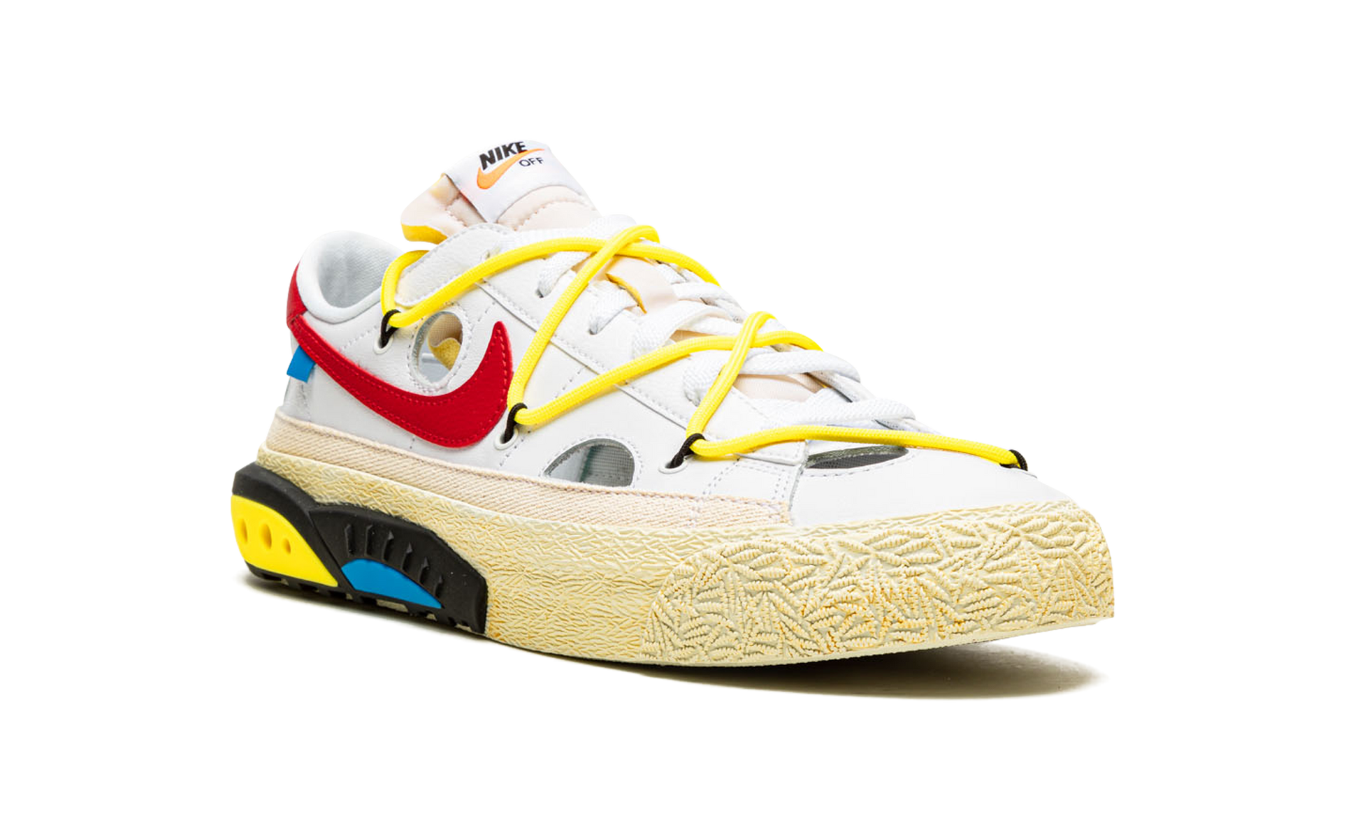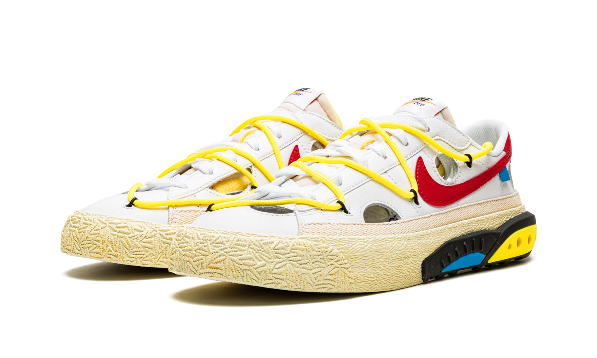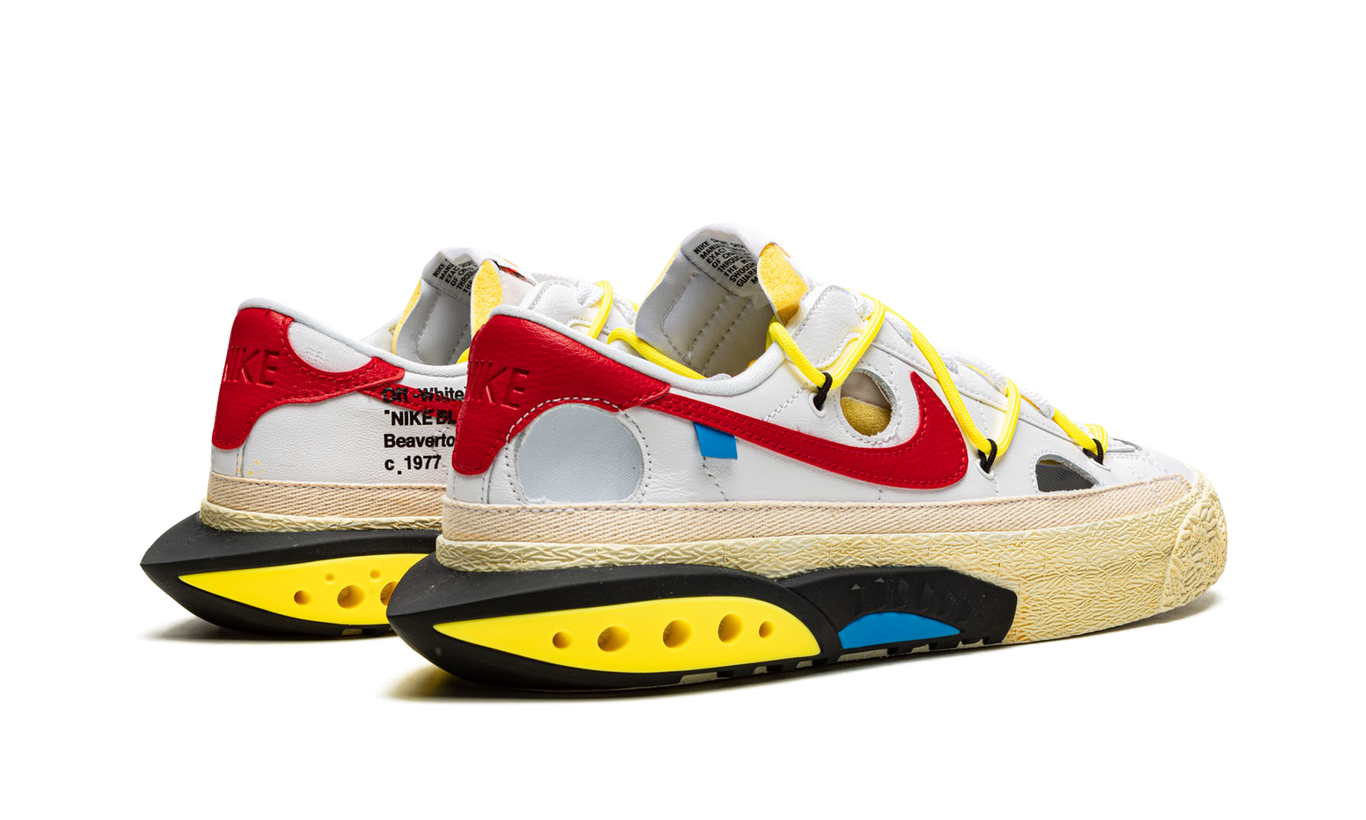 The Off-White x Nike Blazer Low “University Red” is a collaboration between Virgil Abloh’s high fashion brand and Nike on a progressively styled version of the vintage basketball shoe. The first posthumous Nike collaboration from Abloh, who passed away following a private battle with cancer in late 2021, the Blazer Low in “University Red” cuts a vintage-modern look with aged details and inventive styling. The shoe features a white leather base with a University Red leather Swoosh on the sides. Several die-cut circles are found throughout the shoe’s upper. A yellow bungee-cord-like lacing system is found over the traditional lacing setup, an element found on the Off-White x Nike Dunk “Lot 50” series. The aggressive midsole is said to be inspired by the Nike Air Terra Humara shoe. Release date: April 8, 2022