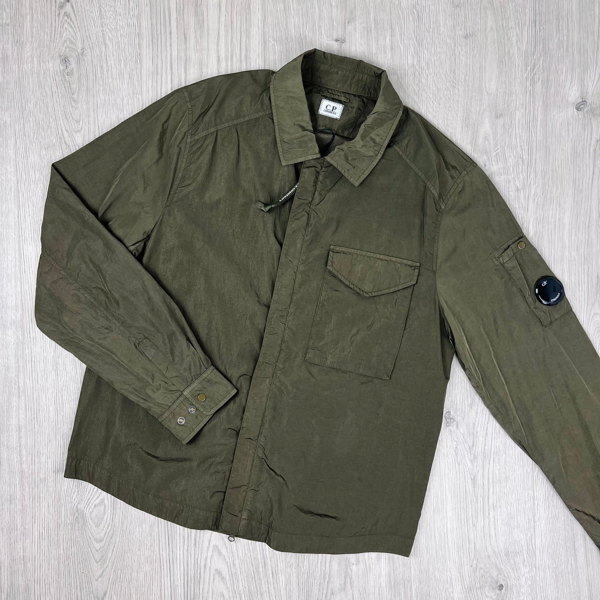 Ivy Green CP Company chrome-R overshirt with chest pocket and sleeve lens