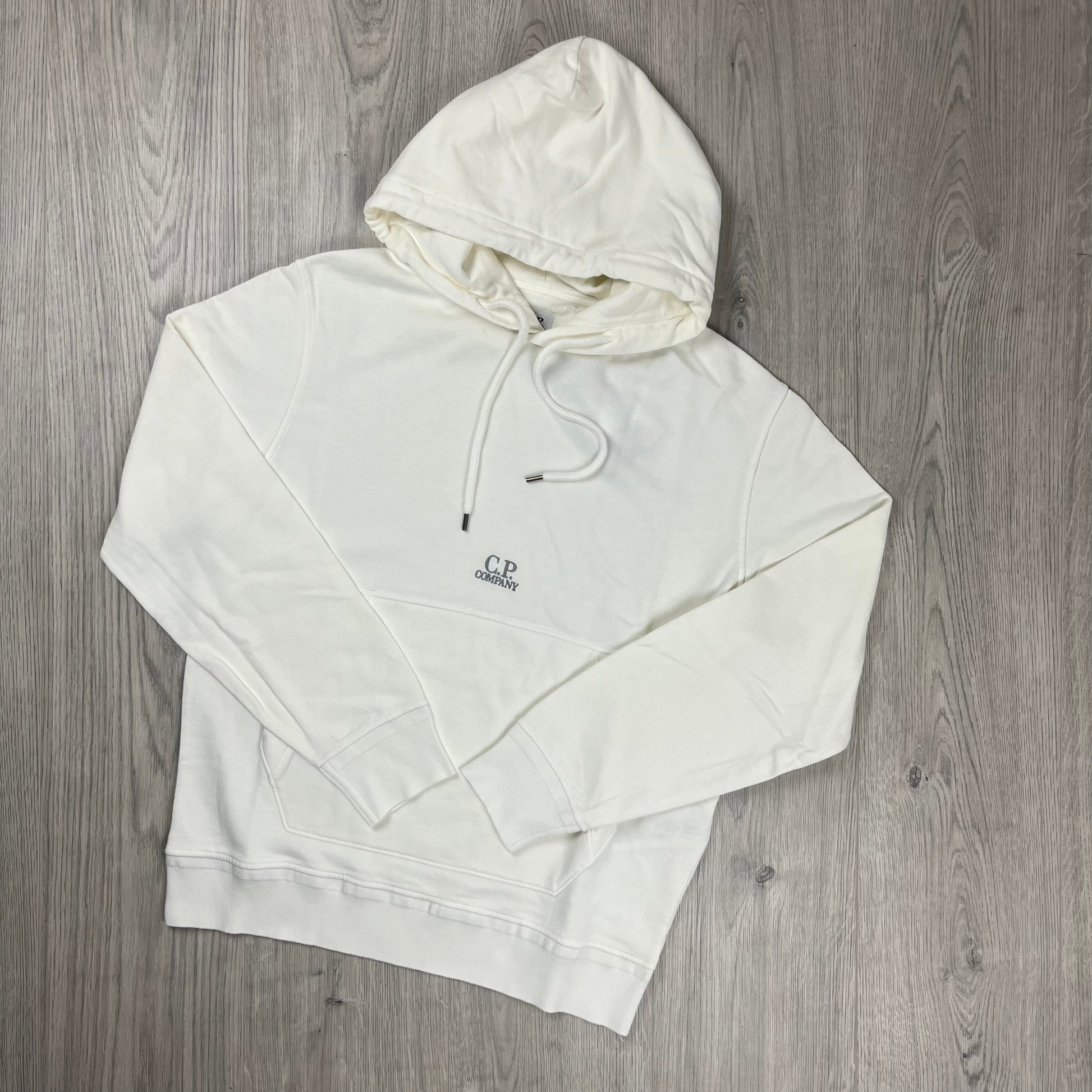 Gauze White CP Company brushed & emerized resist dyed cotton hoodie with centrally embroidered logo on the chest. Resist dye products are coloured individually, and therefore colours aren't always uniform - this is intentional and part of the unique design. Colour irregularities are not a fault.