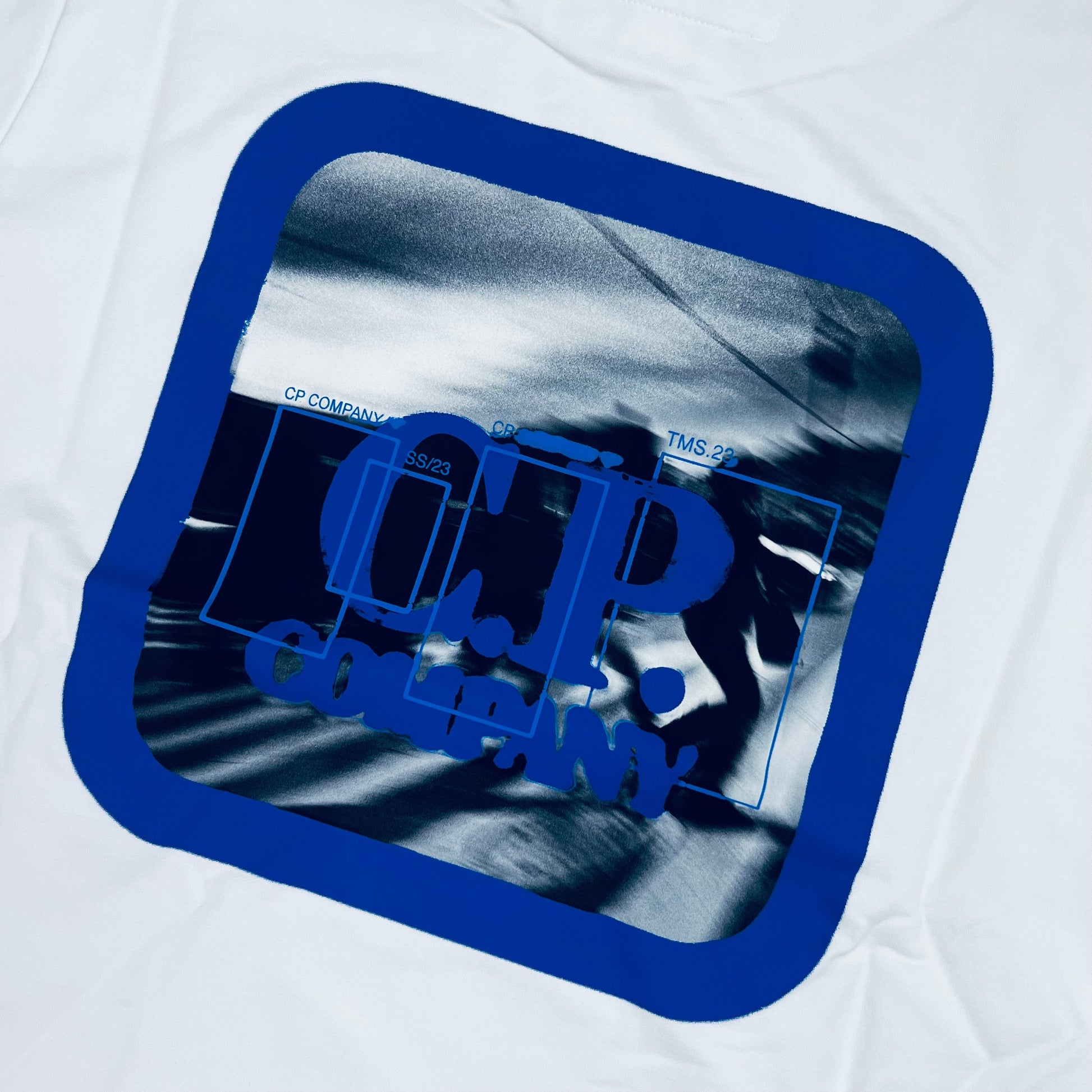Gauze White CP Company Metropolis hoodie made from light fleece cotton with drawstring hood, kangaroo pockets and graphic print on the front and rear