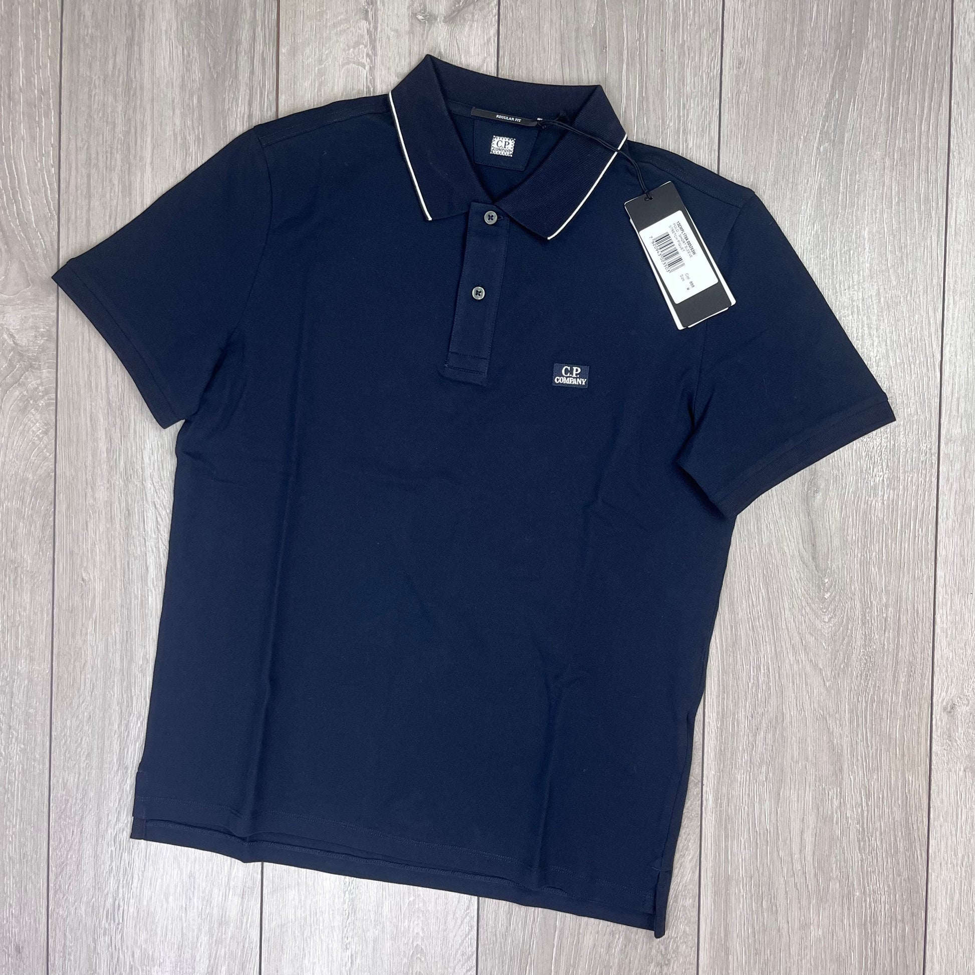 Total Eclipse Navy Blue CP Company polo shirt with chest patch design and tipped collar