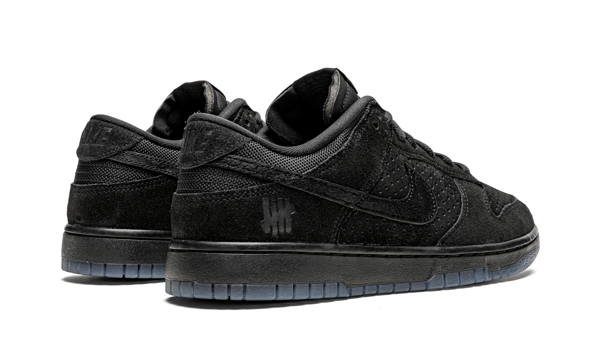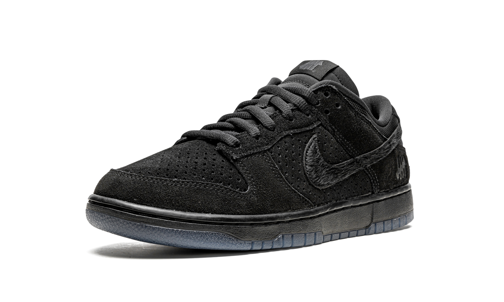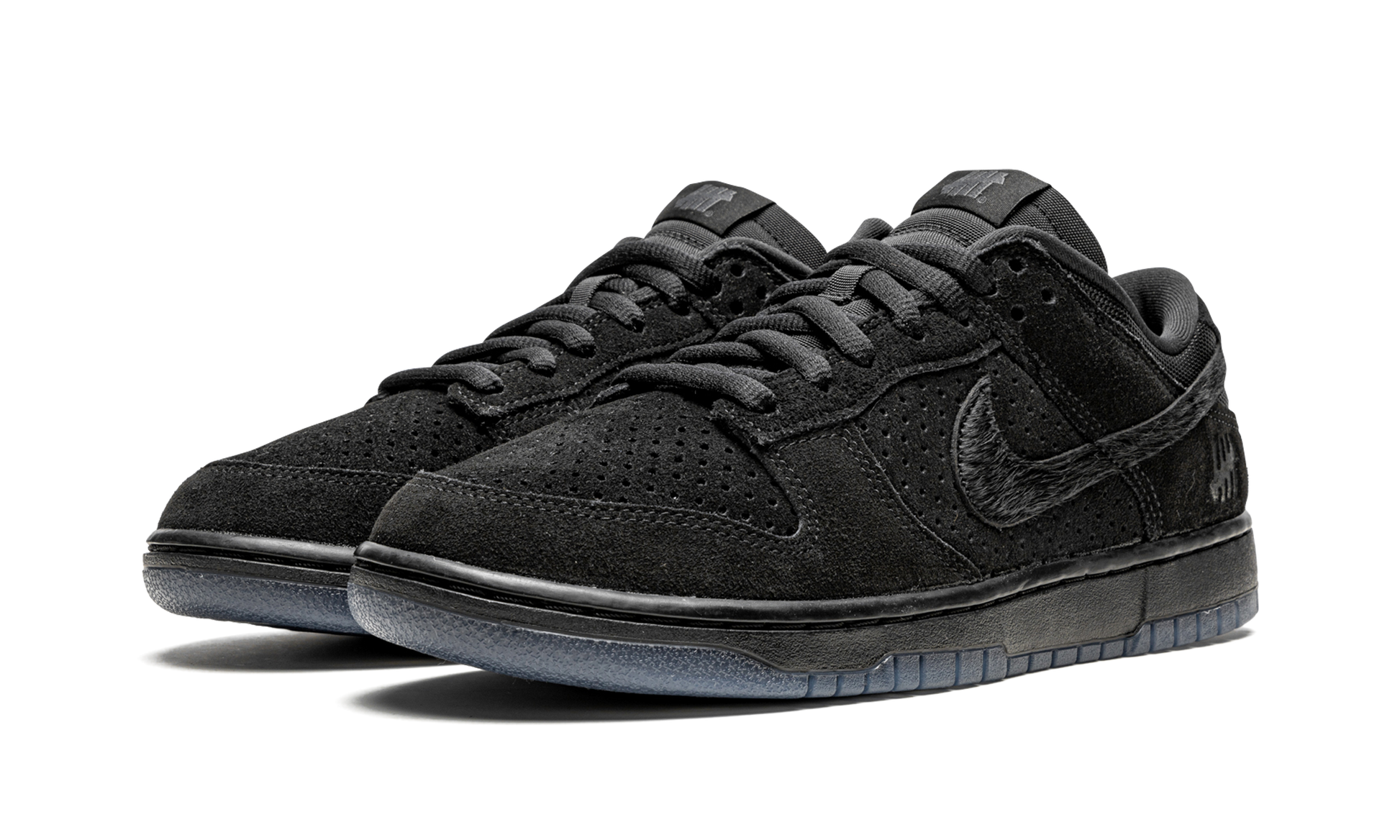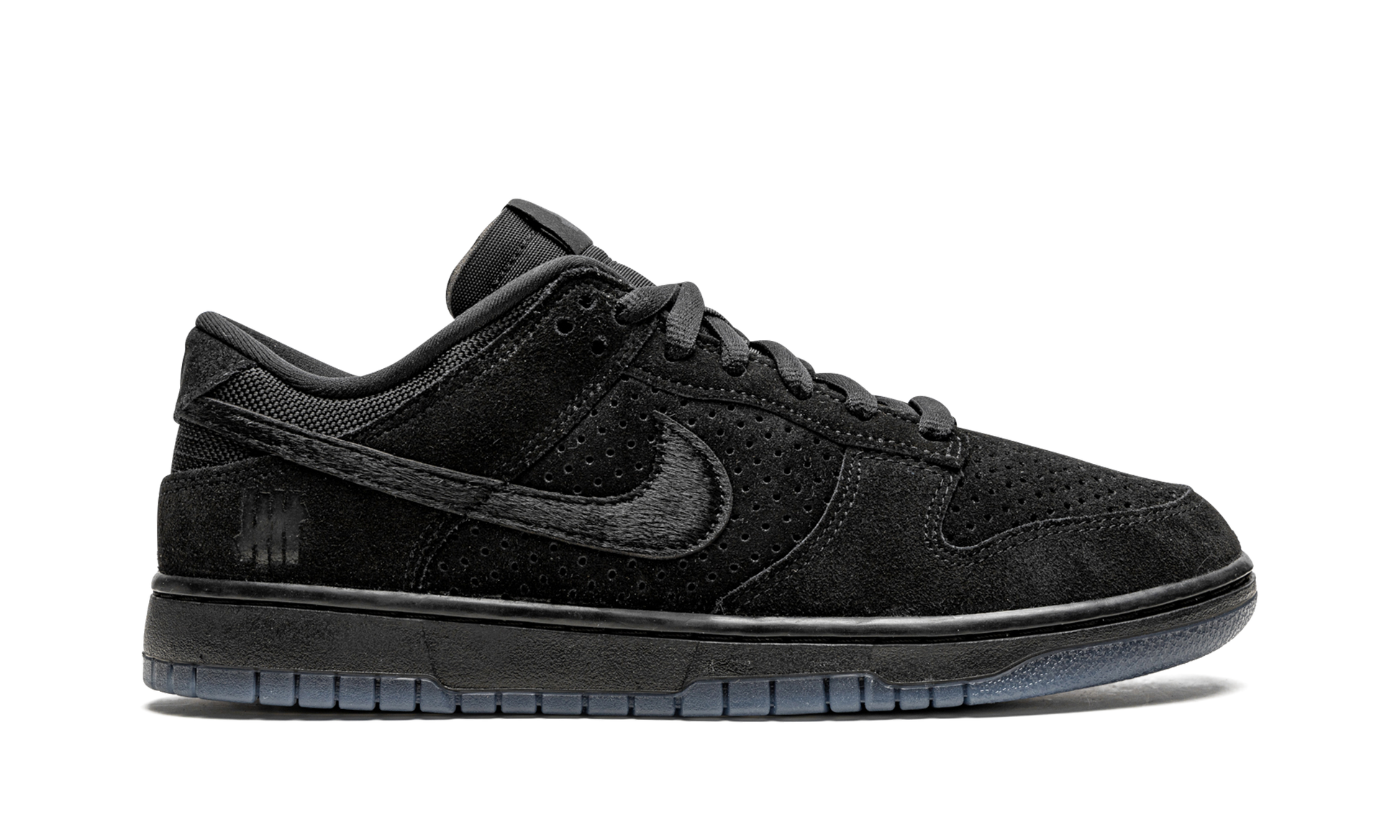 The Undefeated x Nike Dunk Low “Dunk vs AF1 - Black” is a monochromatic black colorway of the retro basketball shoe created by the California-based sneaker boutique and Nike in September 2021. The “Dunk vs AF1” collection honors Undefeated and Nike’s collaborative history by restoring previously used colorways of past collections and transferring them onto new silhouettes. This stealthy look features an interesting combination of materials—all in black—on the upper. Perforated suede appears on the toe and mid-panel while smooth suede can be found on the forefoot and heel. The Swoosh is constructed from pony hair, while the tongue and collar are designed in nylon and mesh, respectively. Undefeated’s signature “Five Strikes” logo can be found on the lateral side of the heel to complete the look. Release date: September 8, 2021