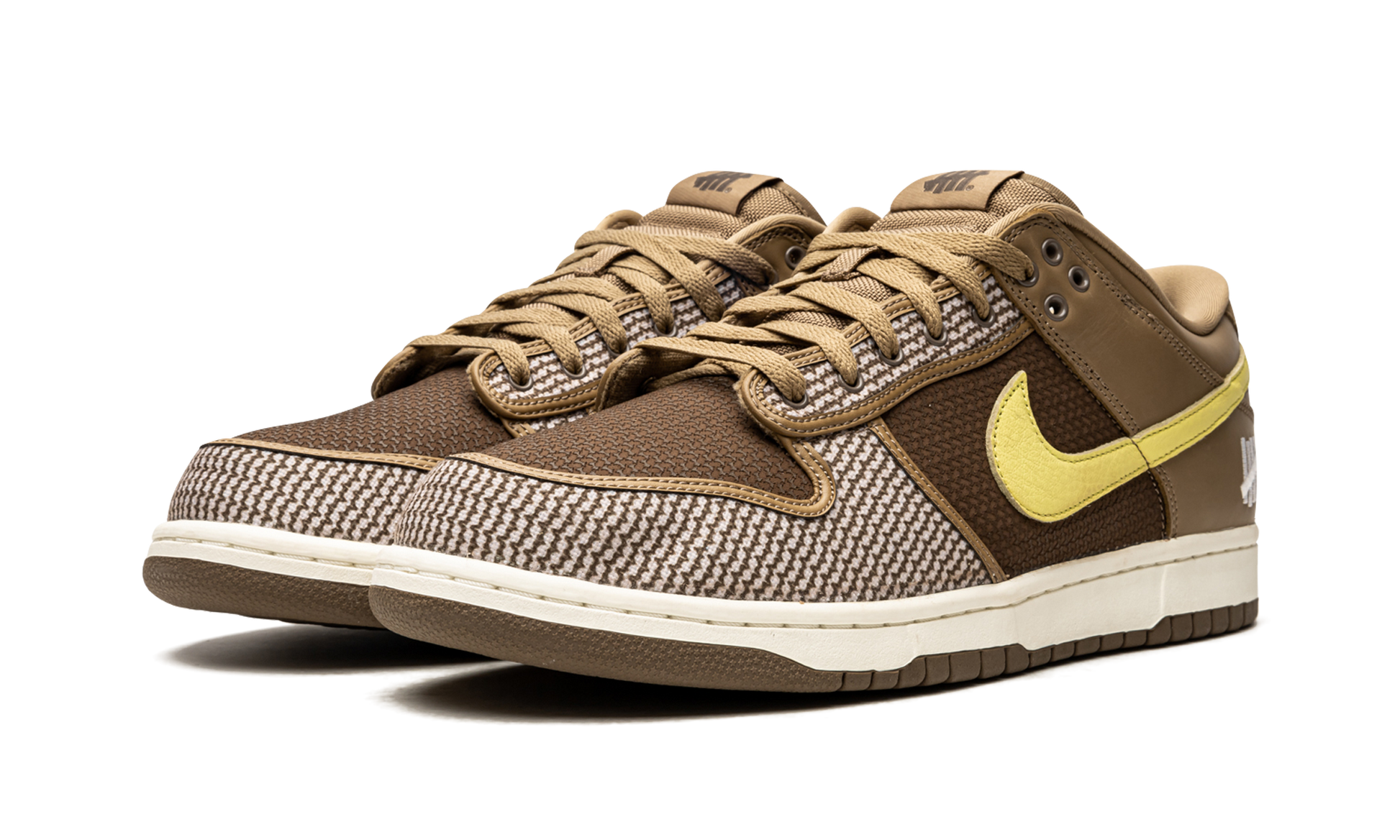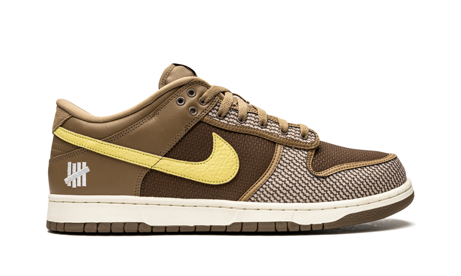 Canteen/lemon frost leather x Undefeated Dunk Low SP "Canteen" sneakers from NIKE featuring panelled design, signature Swoosh logo detail, embroidered logo to the rear, embroidered logo to the side, logo patch at the tongue, round toe, front lace-up fastening and rubber sole. These styles are supplied by a premium sneaker marketplace. Stocking only the most sought-after footwear, they source and curate some of the most hard to find sneakers from around the world..