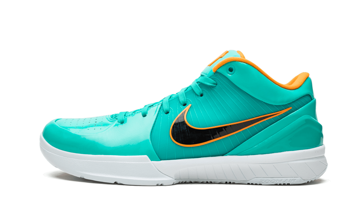 The Undefeated x Nike Kobe 4 Protro PE “DeMar DeRozan” is an exclusive colorway made for San Antonio Spurs guard DeMar DeRozan. The former USC basketball star is one of four Team Kobe members to receive a makeover specific to his team’s uniform colors in conjunction with Undefeated’s collaboration with Nike Basketball on the Kobe 4. Using retro Spurs colors as the inspiration behind the design, the base features a teal Flywire mid-panel base with a mango outlined black Swoosh on top. A teal patent leather covers the toe, ankle collar, and heel. Bright mango accents are found on the sock-liner, as well as on the dual-branded tongues featuring both Undefeated and Kobe logos. The numbers “8” and “24” that Bryant wore during his time as a Laker, appear in orange on the heel. Completing the low-top silhouette is a semi-translucent orange and white outsole. The Undefeated x Nike Kobe 4 Protro PE “DeMar DeRozan” was released on August 24th, 2019.