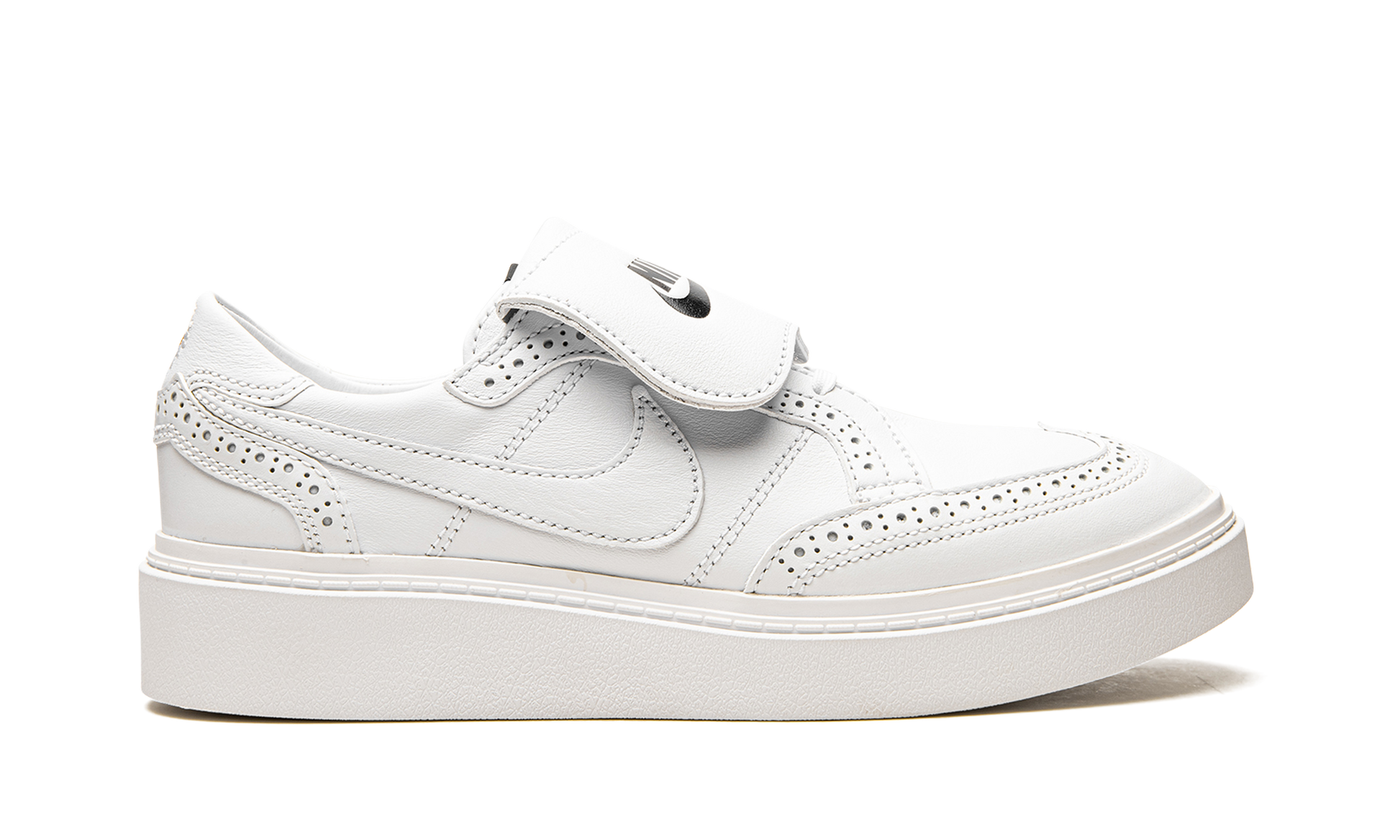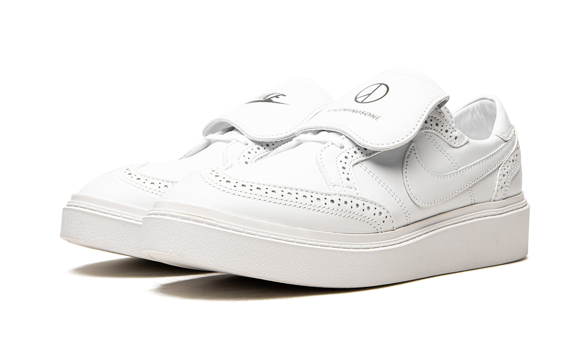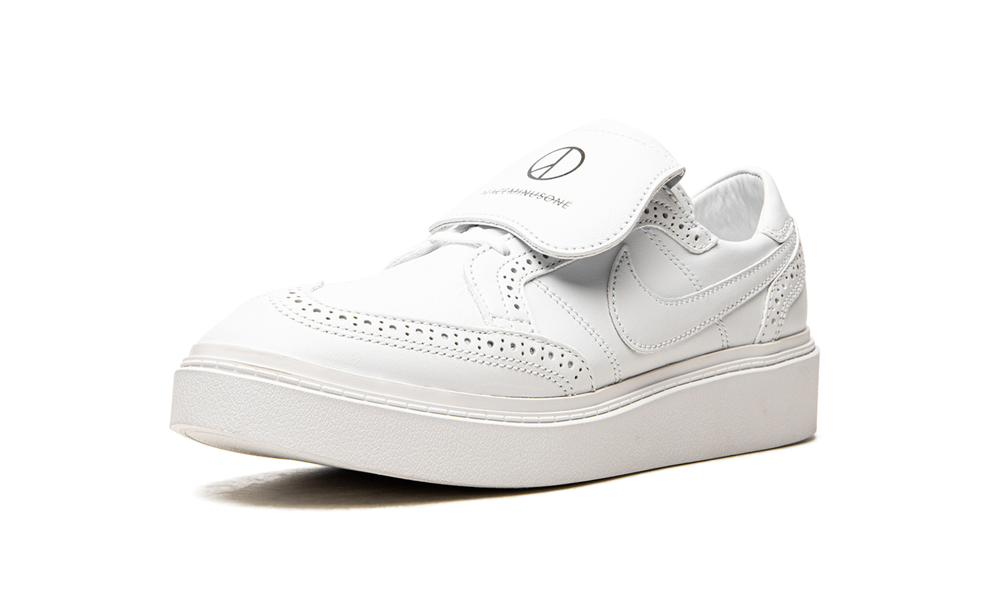 The G-Dragon x Nike Kwondo 1 “White” is a collaboration between the South Korean hip-hop artist and Nike that introduced a new silhouette to the brand’s footwear collection in December 2021. The Nike Kwondo 1 is named after the Korean martial art of taekwondo, and its design is inspired by several footwear styles, most notably brogue-style dress shoes, Stefan Janoski’s Nike SB Janoski line, and ‘90s-era football cleats. This is evident from the perforations found along each panel, the overall shape of the shoe, and the overlapping tongues, respectively. The white monochromatic colorway features tonal Swoosh branding on either side and dual “Nike” and “Peaceminusone” logos on the left and right tongues, respectively. An embroidered daisy detail on the heel is a nod to G-Dragon’s logo. More classic, formal-looking footwear inspires the look of the shoe’s white rubber sole. Release date: December 3, 2021