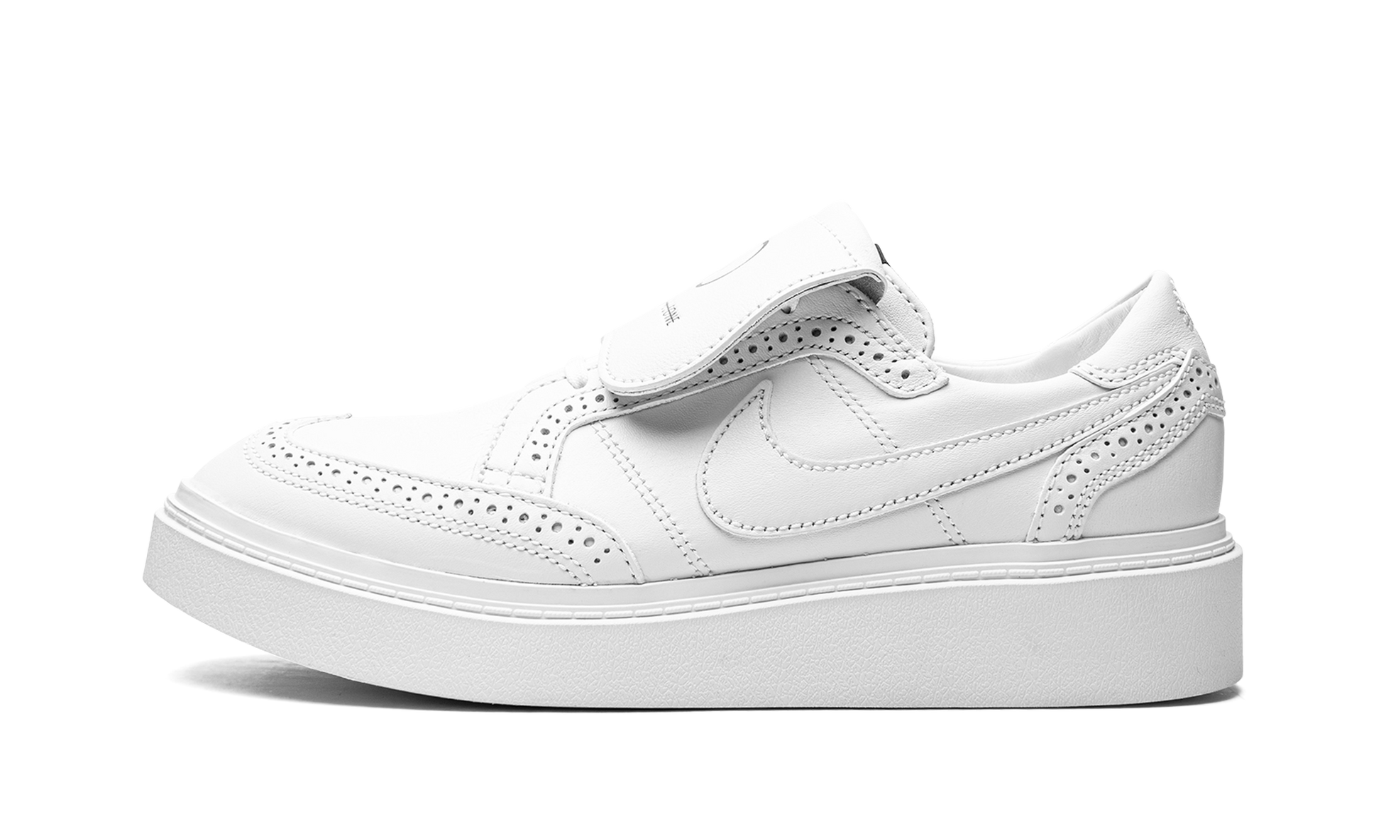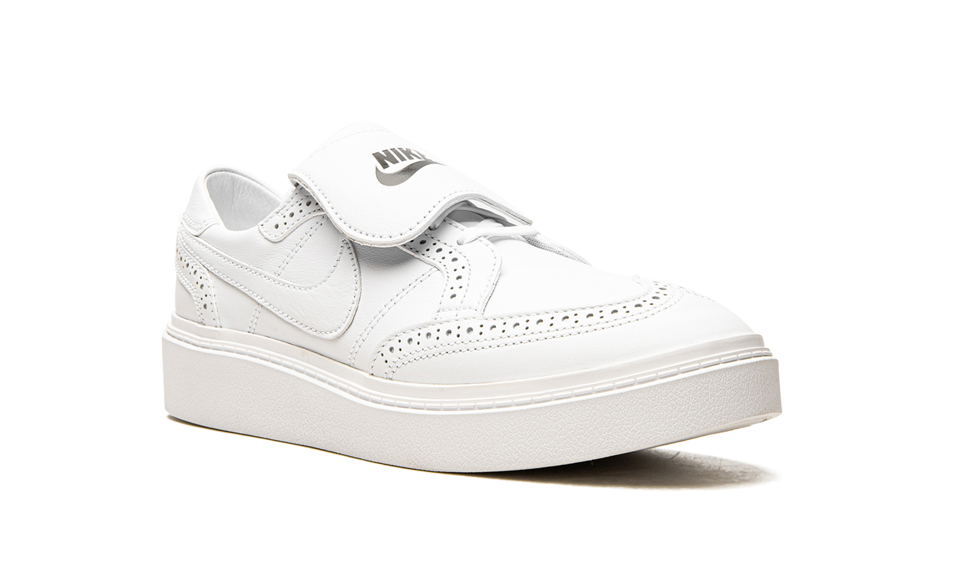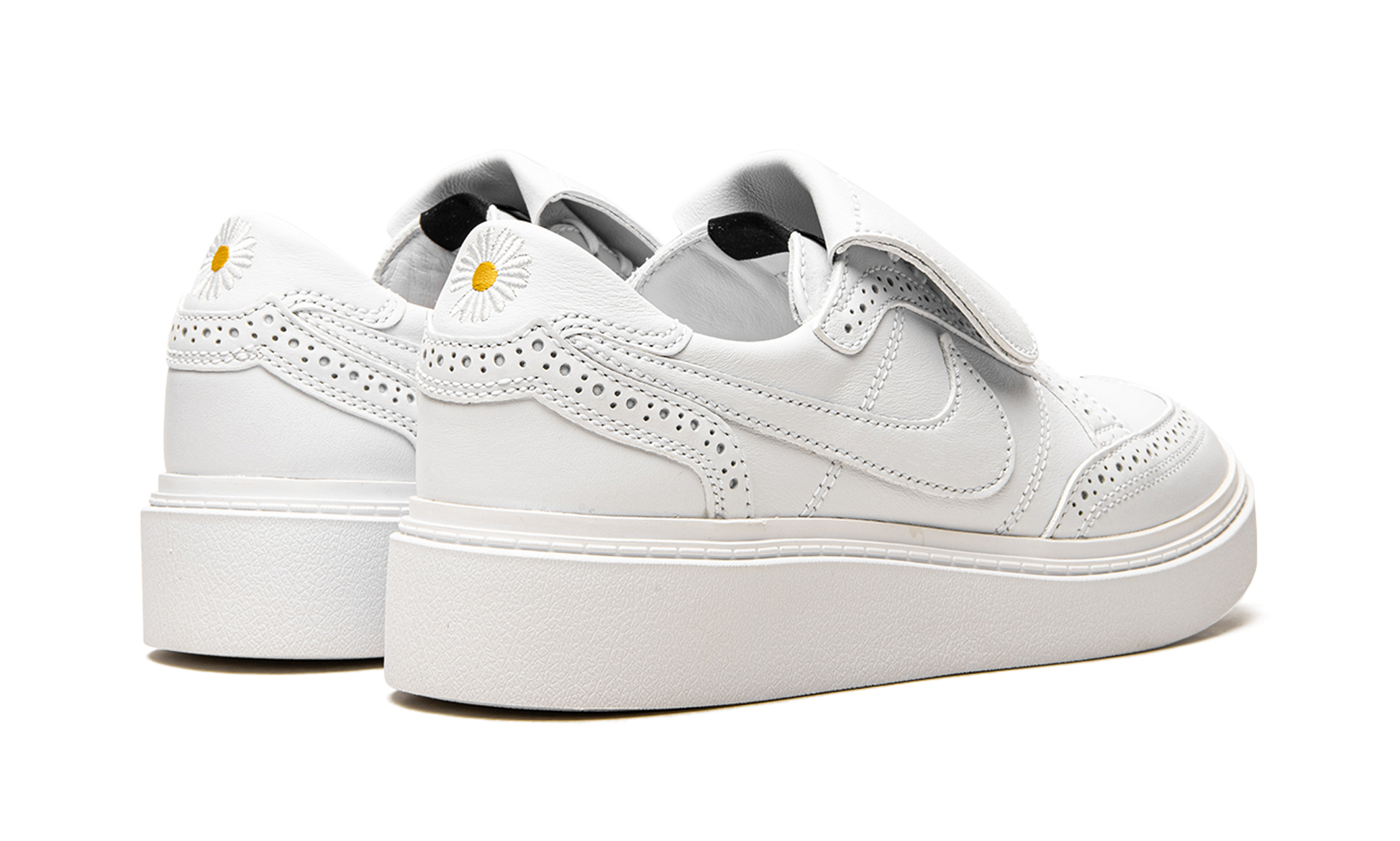 The G-Dragon x Nike Kwondo 1 “White” is a collaboration between the South Korean hip-hop artist and Nike that introduced a new silhouette to the brand’s footwear collection in December 2021. The Nike Kwondo 1 is named after the Korean martial art of taekwondo, and its design is inspired by several footwear styles, most notably brogue-style dress shoes, Stefan Janoski’s Nike SB Janoski line, and ‘90s-era football cleats. This is evident from the perforations found along each panel, the overall shape of the shoe, and the overlapping tongues, respectively. The white monochromatic colorway features tonal Swoosh branding on either side and dual “Nike” and “Peaceminusone” logos on the left and right tongues, respectively. An embroidered daisy detail on the heel is a nod to G-Dragon’s logo. More classic, formal-looking footwear inspires the look of the shoe’s white rubber sole. Release date: December 3, 2021
