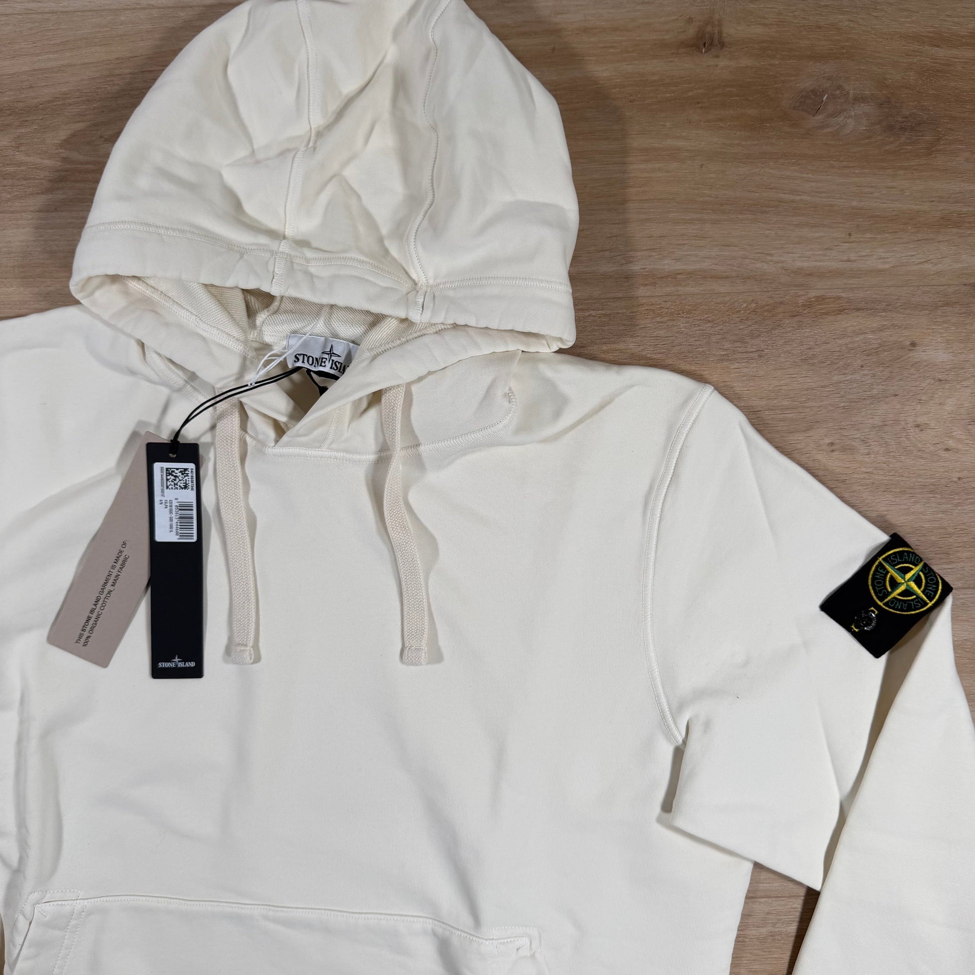 Stone Island Organic Cotton Fleece Pullover Hoodie in Ivory