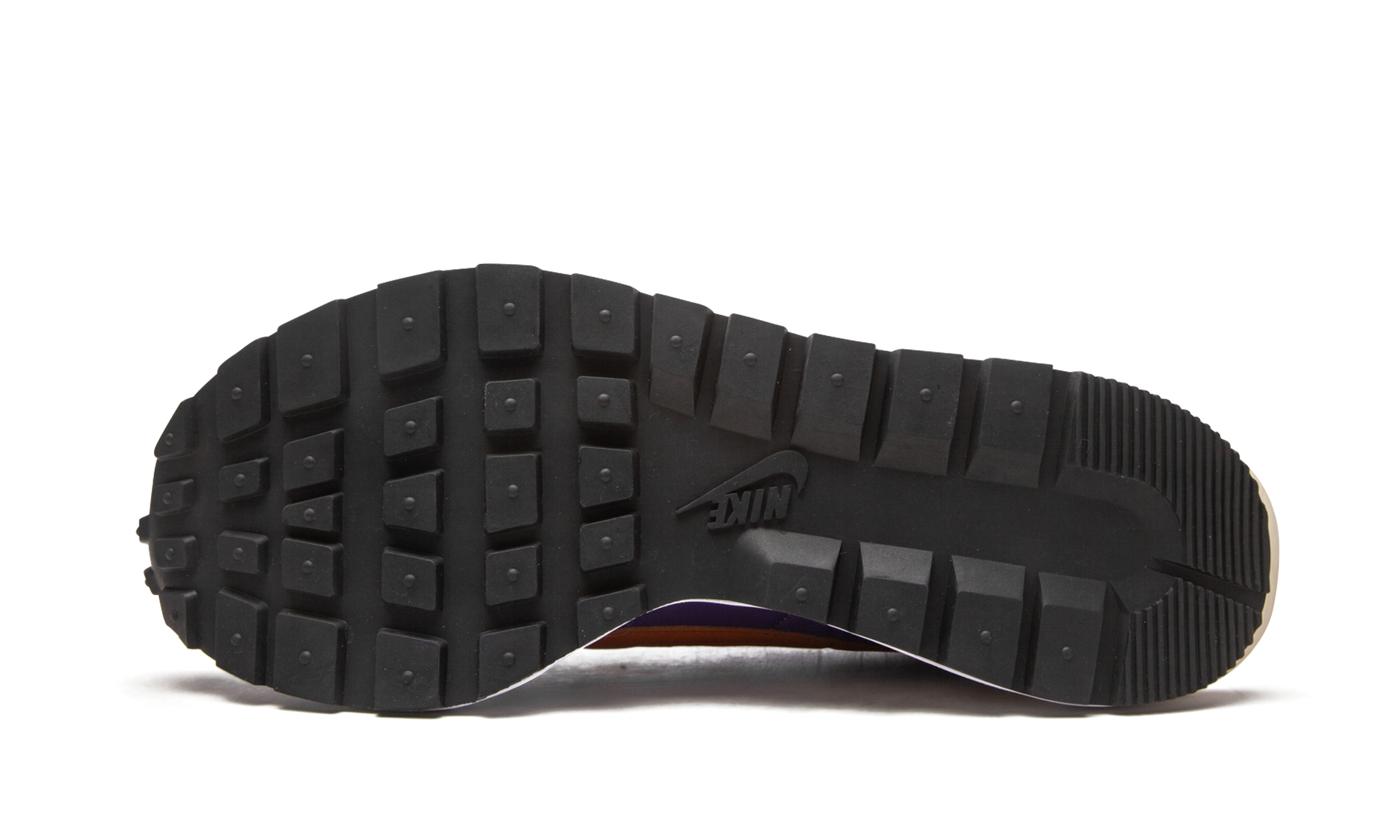 The sacai x Nike VaporWaffle “Dark Iris” is a Spring 2021 collaboration between Chitose Abe’s avant garde fashion label and Nike on the hybrid silhouette. In late 2020, sacai and Nike released its first VaporWaffle, a low-top shoe that combines design elements of Nike’s Vaporfly and Air Pegasus ‘83’s performance runners. Like its previous collaborations on the Blazer Mid and LDWaffle, sacai’s VaporWaffle does everything in “twos.” It should be noted that the upper of the “Dark Iris” features a new nylon construction in comparison to the original mesh-based build the model previously employed on colorways like the “Villain Red.” A mixture of light and dark purples appear on the aforementioned nylon mid-panel and collar and on the suede toe. Painted purple Swoosh logos are layered beneath the orange leather Swoosh on either side of the shoe. The same hue of burnt orange leather appears on the heel tab with dual sacai and Nike branding. Oversized navy blue and white laces are placed over the layered purple and white nylon tongues. The stacked midsole splits at the heel in a shape reminiscent of the Vaporfly. Release date: Spring 2021.