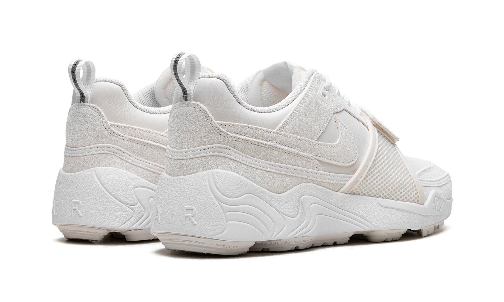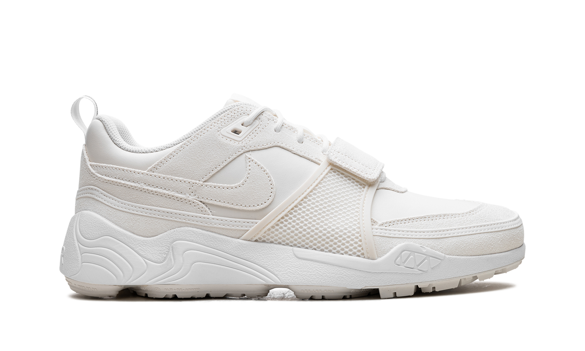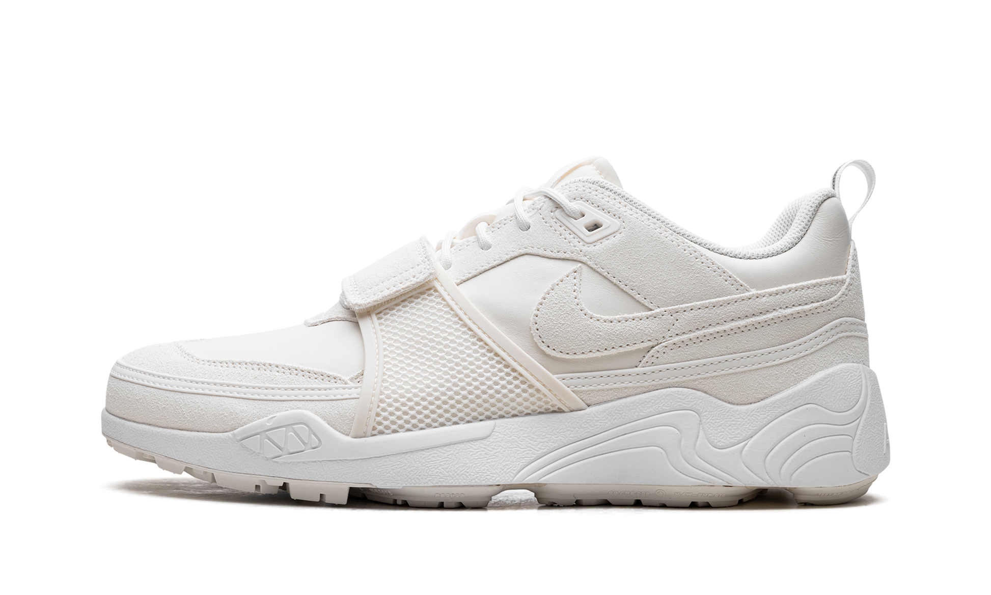 Step into a fresh collaboration with the Travis Scott Nike Zoom CJ1 "Sail White." This unique design showcases a blend of athletic performance and Travis Scott's signature style. Featuring a combination of materials and a clean "Sail White" colorway, this sneaker offers a distinctive look. Details and branding elements add to the shoe's exclusive appeal.